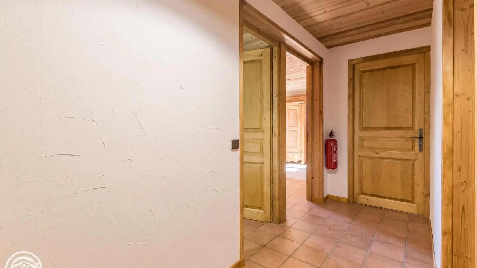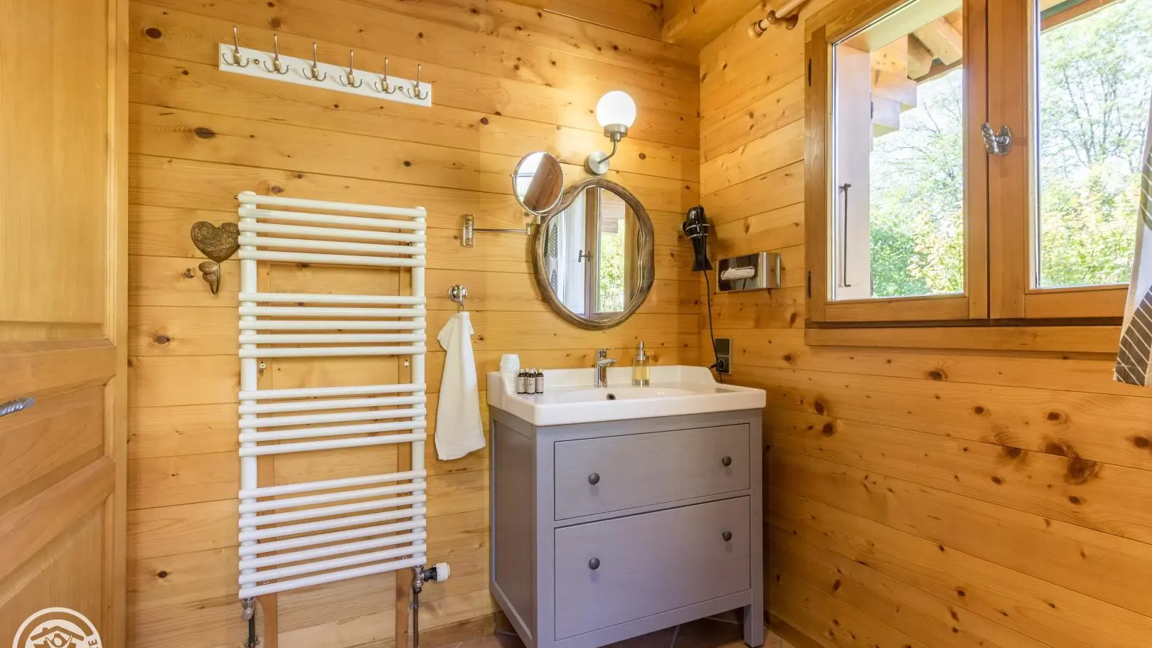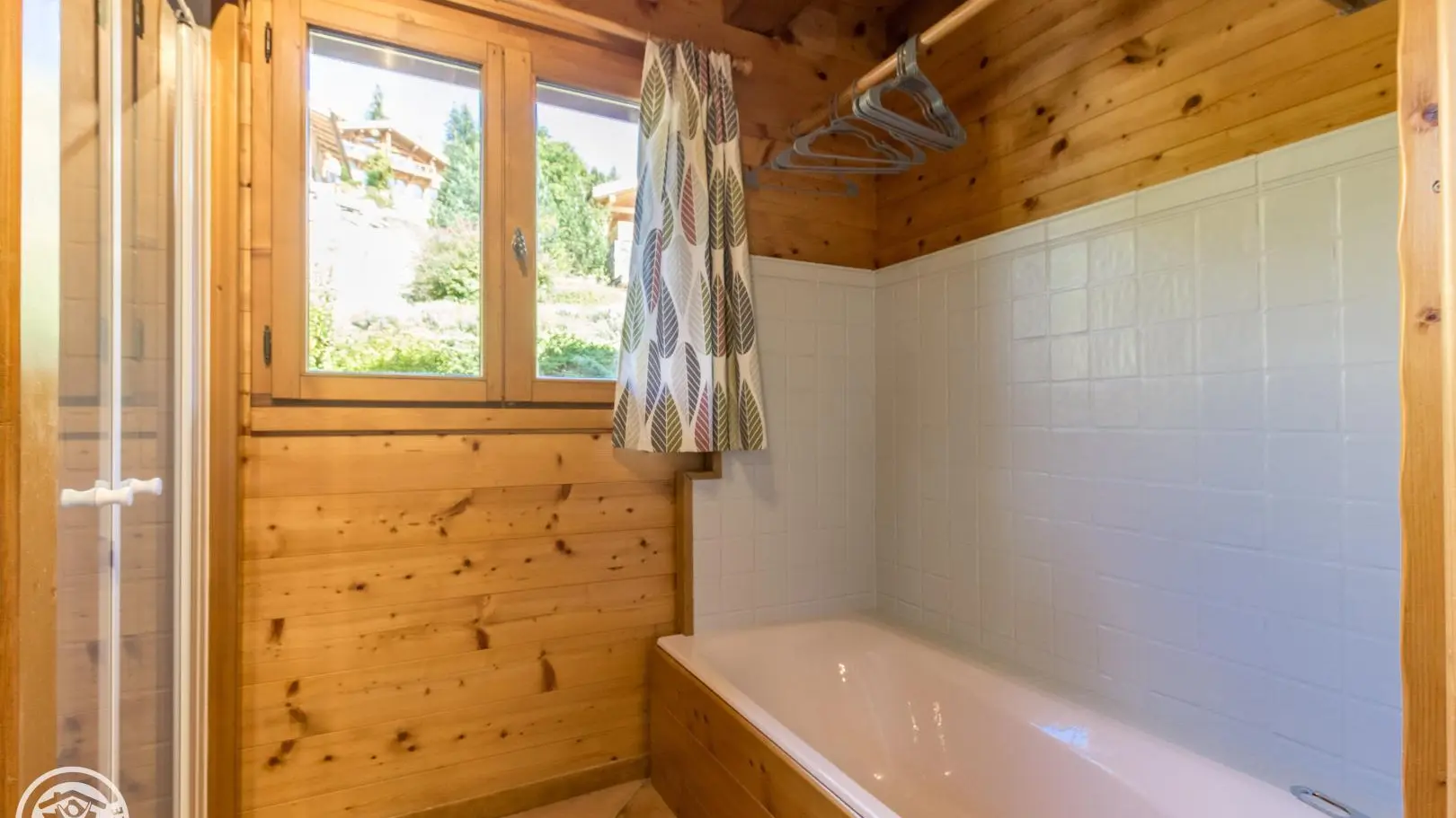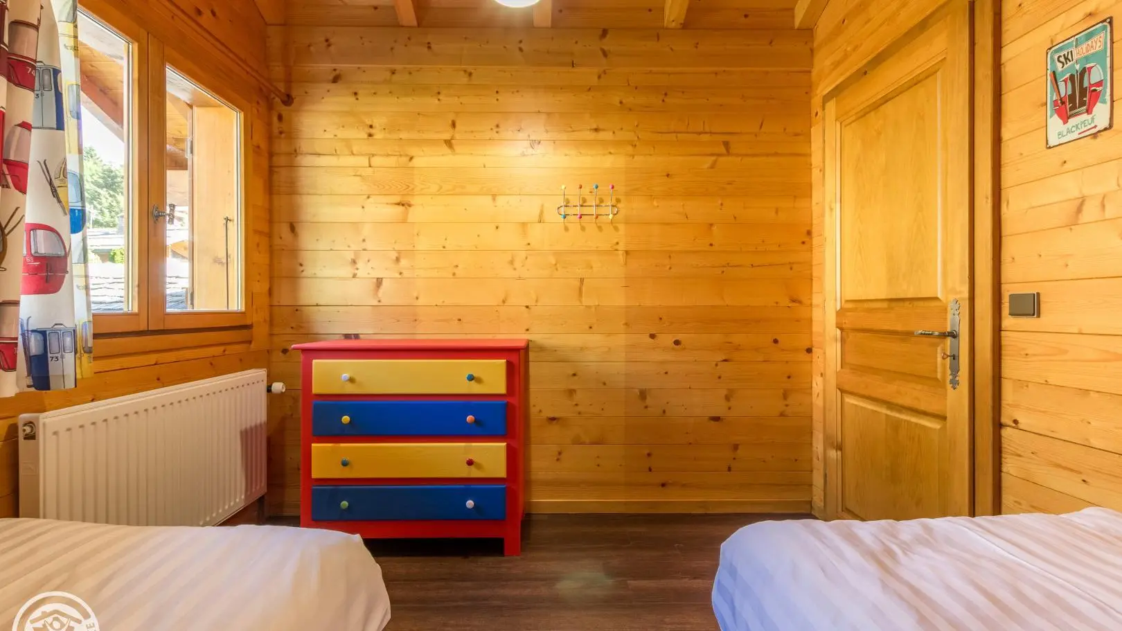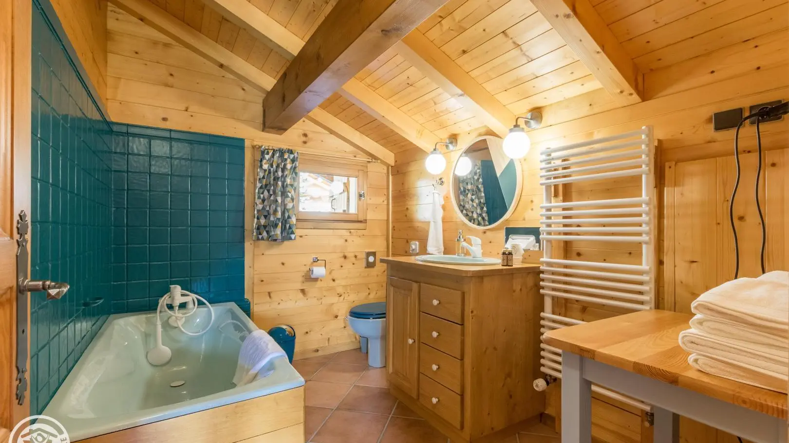 Garden level (lower part of the chalet): bedroom 2 (1 160x200cm bed, sink), bedroom 3 (2 90x200cm beds that can be joined together, sink, TV, access to the terrace), 1 separate toilet.