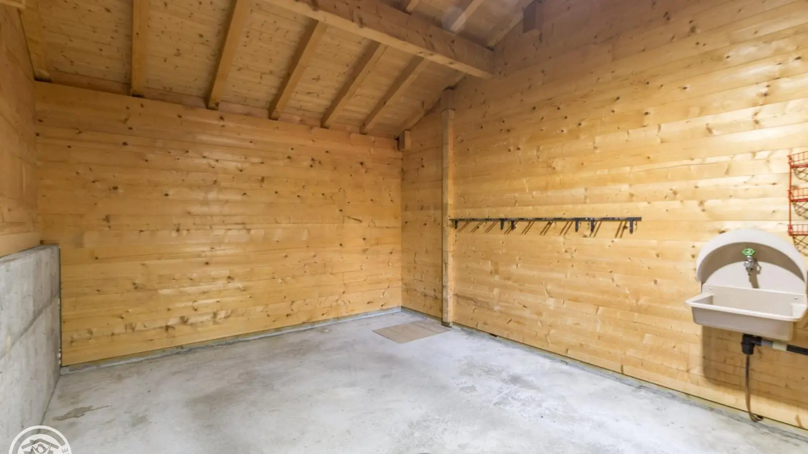 1 car garage, ski rack. 3 parking spaces next to the chalet.