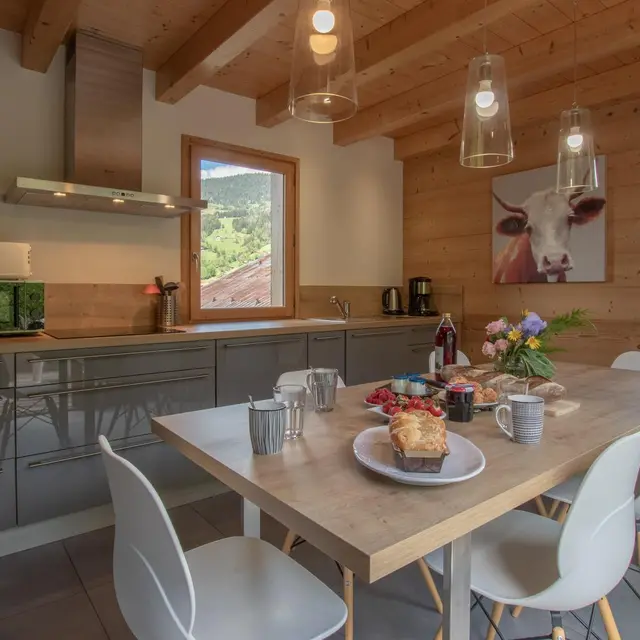 On the heights of the traditional village of Manigod, in a quiet, independent cottage offering a beautiful view of the mountains and the village. Quality services. Garage, wood stove, terrace...