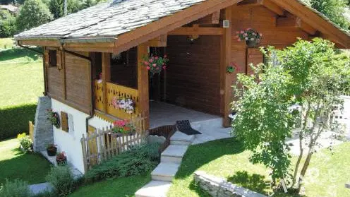 Detached 80 m² chalet surrounded by private enclosed grounds, with stone roof. Sleeps 2/6.