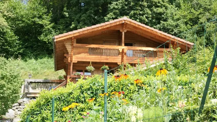 garden of 1000 m2 with trees, quiet with views of the mountains