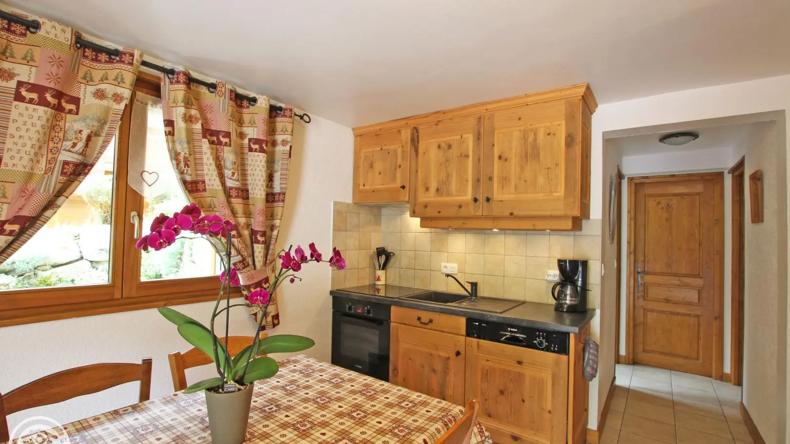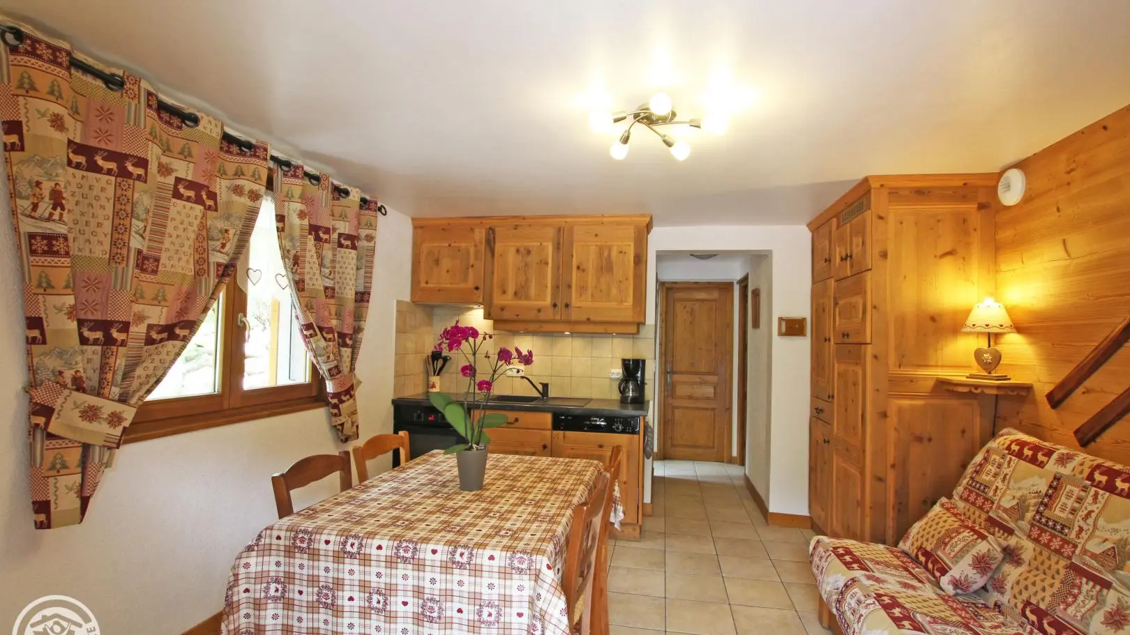 Below the pistes of the Portes du Soleil ski area, gîte (36 sq. m.) on ground floor of chalet also containing owners' home and another gîte. Fitted kitchen opening onto living room (sofa bed), bedroom (3 single beds, two of which can form double bed, if required), shower room, separate WC. Ski store. Small terrace (garden furniture, BBQ). Private parking in front of gîte, shared courtyard. Bed linen hire can be arranged. Underfloor heating. 10% discount for stay of 3 weeks. Châtel centre 2.5km. Downhill skiing nearby. Free shuttle service 50m. Paragliding 3km. Lots of hiking/riding trails in the Abondance valley. Thonon (Lake Geneva, thermal baths) 40km. Close to Switzerland.