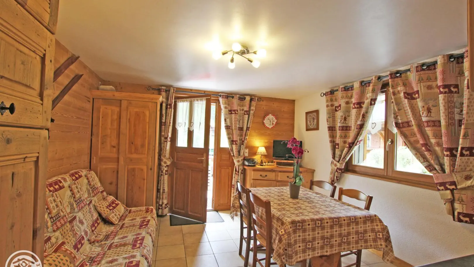 At the foot of the Portes du Soleil ski area, 36 m2 gîte on the first floor of a chalet that also includes the owners' accommodation and 1 other gite.