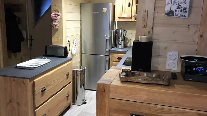 Hameau de la Clairière route de la Clusaz 400m from the village 80m² chalet (including 13m² attic space), sleeps 8, 3 bedrooms + mezzanine, fully renovated in the mountain style, tastefully decorated with wood-burning stove. Co-owned swimming pool with superb views of the mountains and the village of Saint Jean de Sixt, with outdoor games for children, pétanque. Entrance, kitchen, living room, sitting room, reading area, bathroom on the ground floor, shower room on the first floor, storeroom, parking space reserved for the chalet.