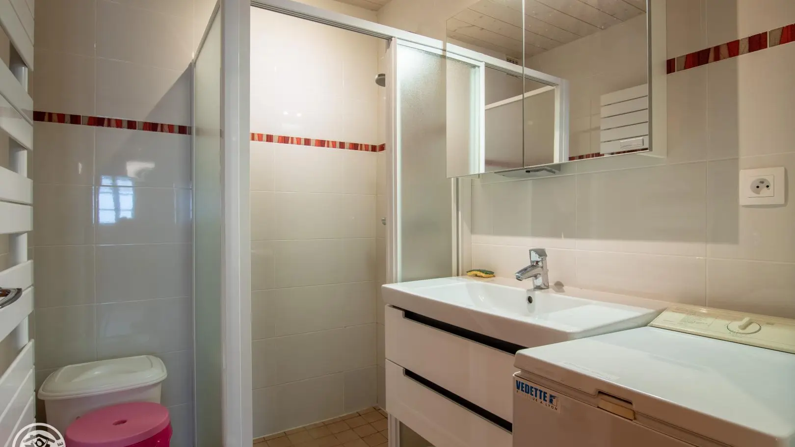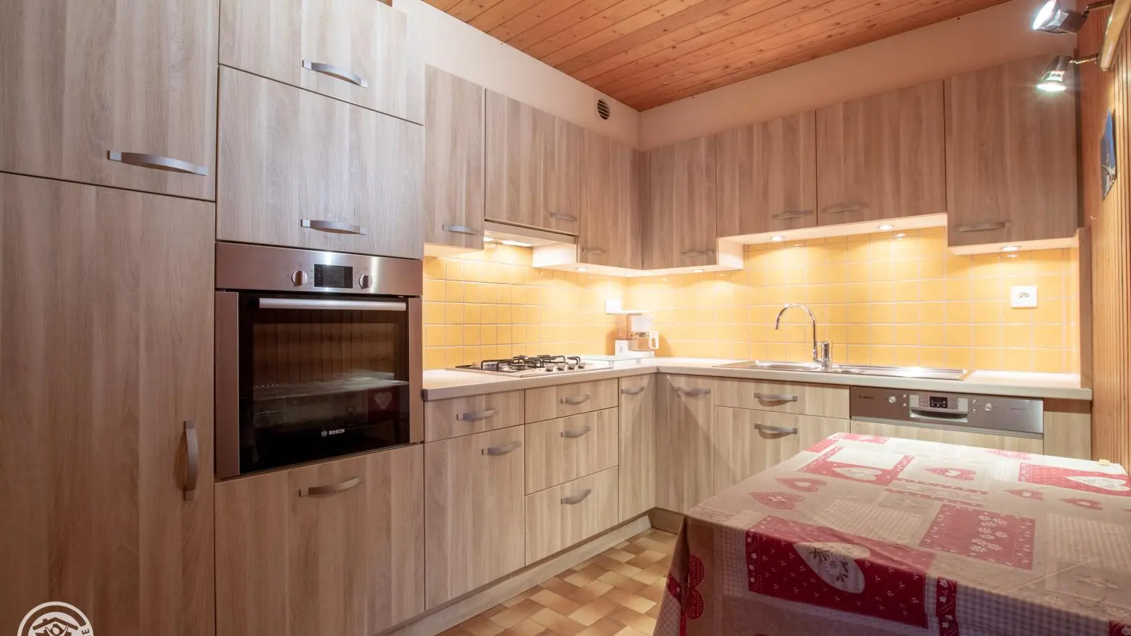 Integrated kitchen open to dining room and living room (bench), bedroom 1 (1 bed 140cm), bedroom 2 (2 beds 90cm). Shower room, separate wc. Central heating, satellite TV equipment. private courtyard, land, garden furniture, barbecue, garage. Cottage using renewable energy (wood boiler).