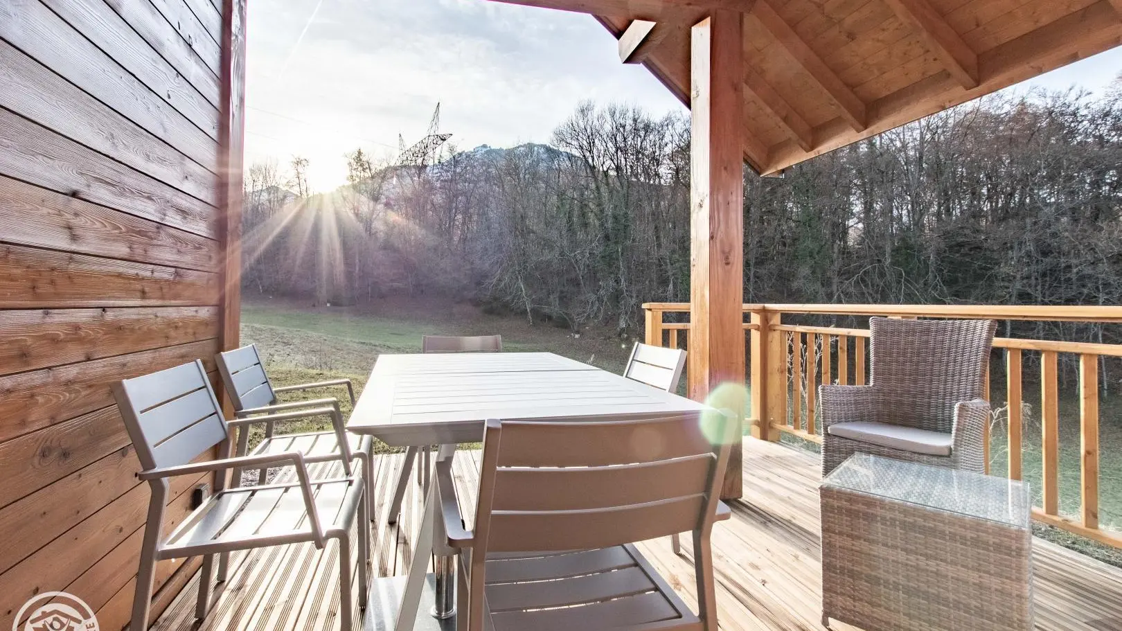 Private terrace accessible from French window in the living room with outdoor furniture. Hikes nearby, Tamié Abbey 4 km, Ski: Aravis resorts 35Km (La Clusaz, Le Grand Bornand, La Croix Fry Merdassier), summer shuttle from Faverges. Lake Annecy, Doussard 14 km.