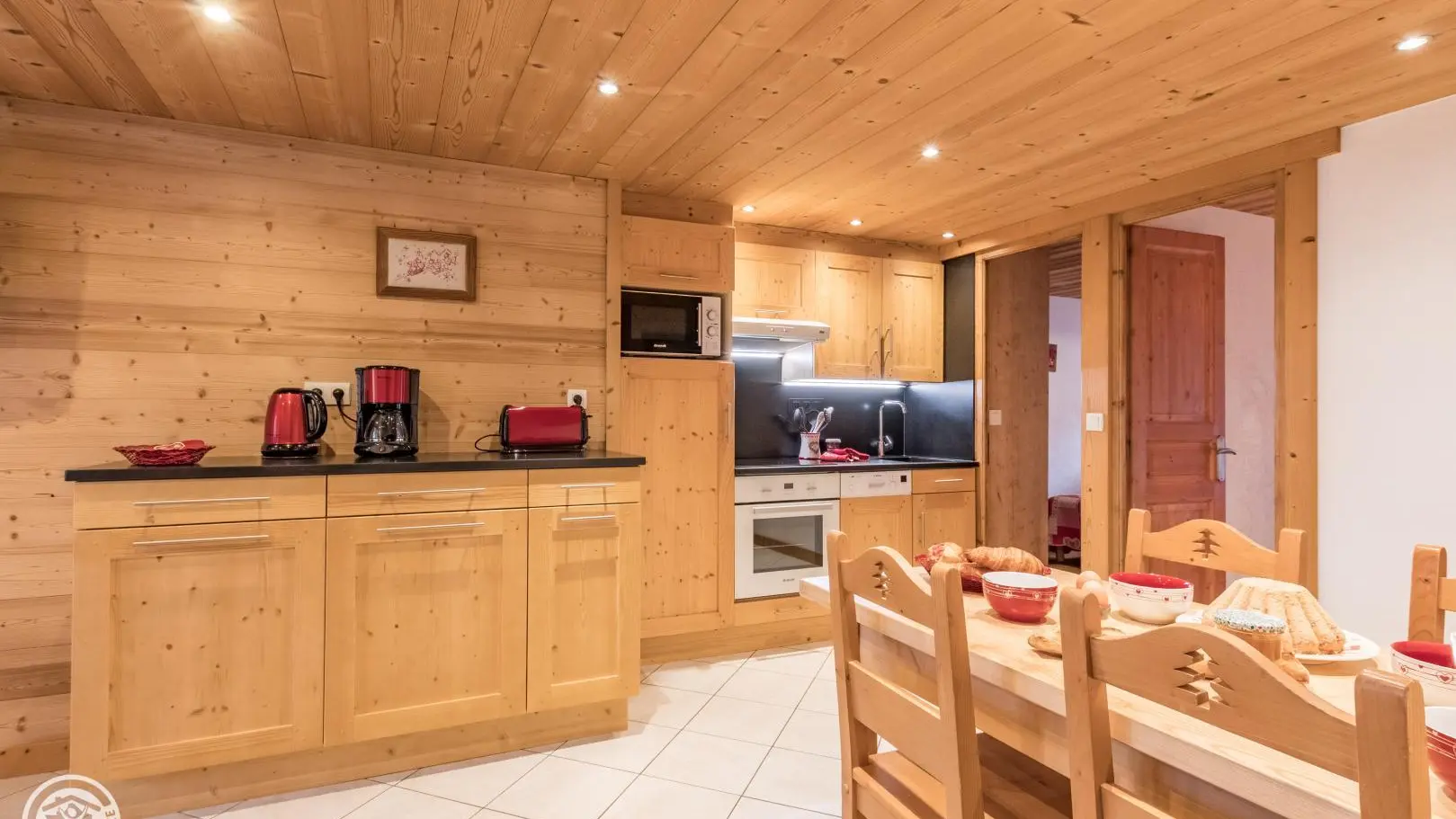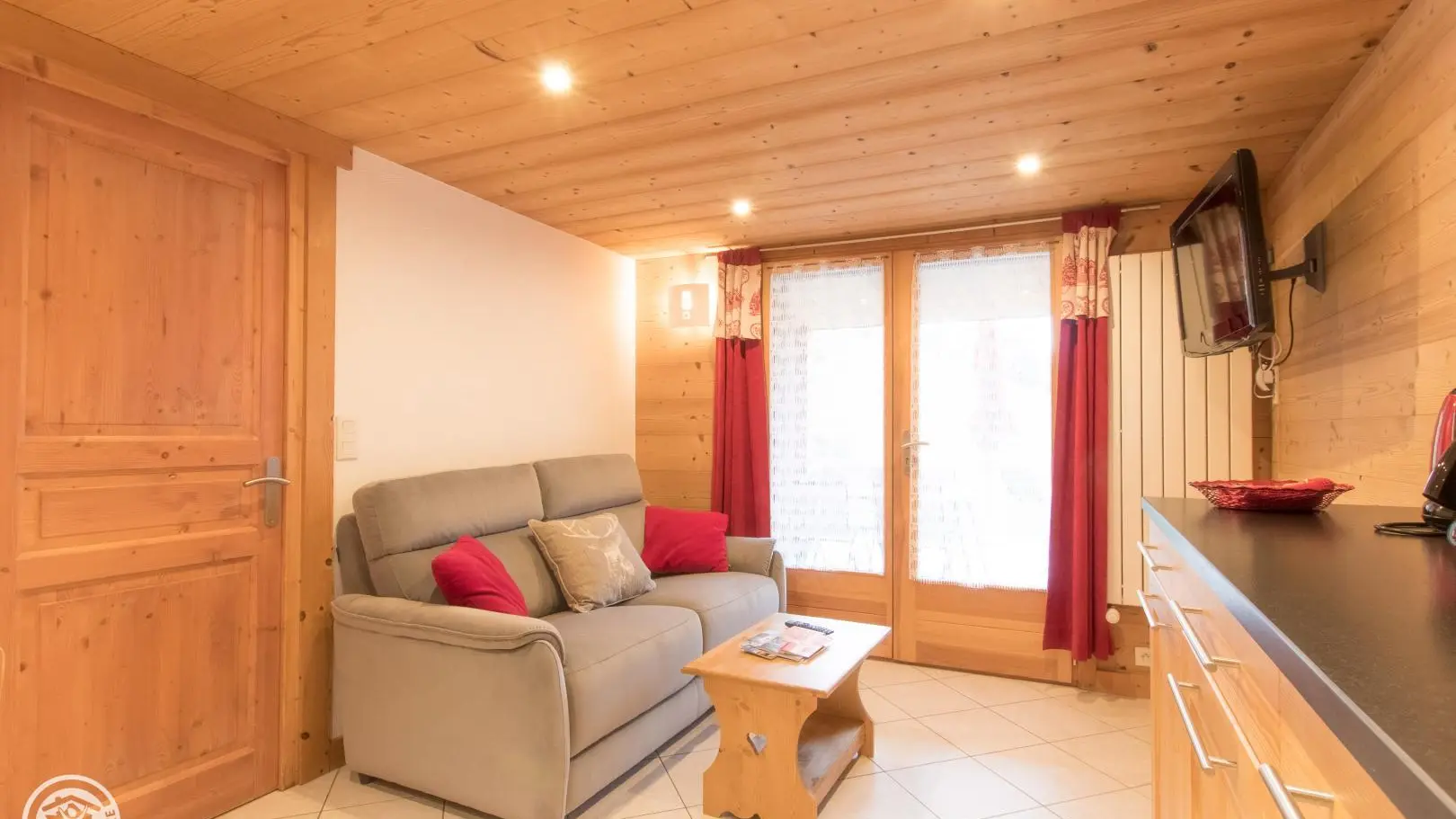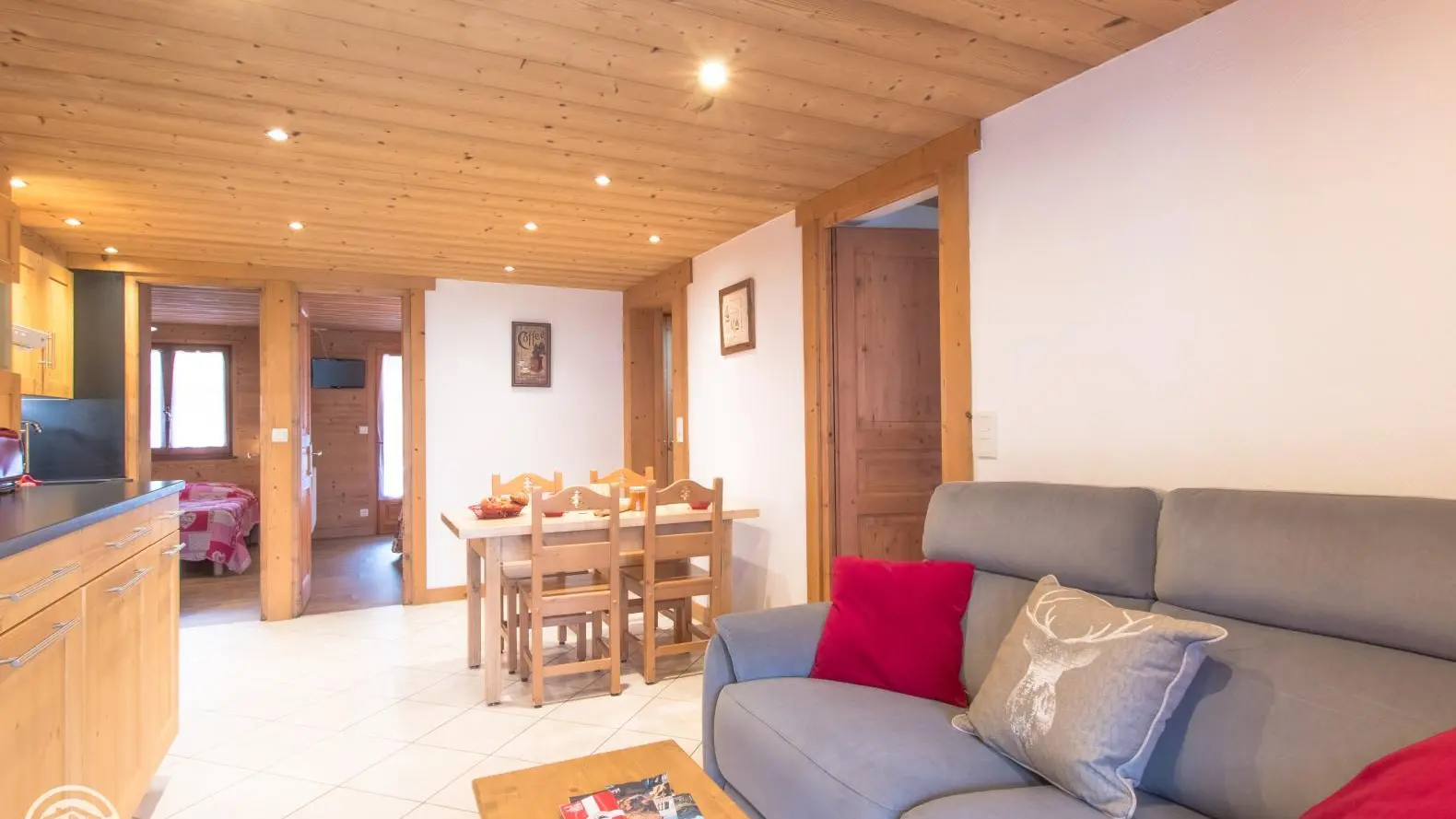 Gîte of 50m² on the 1st floor of an old, completely restored Savoyard chalet also comprising 3 other gîtes (ref. 136021, 136022 and 136068). Maximum capacity: 6 people. Common entrance with another gite.