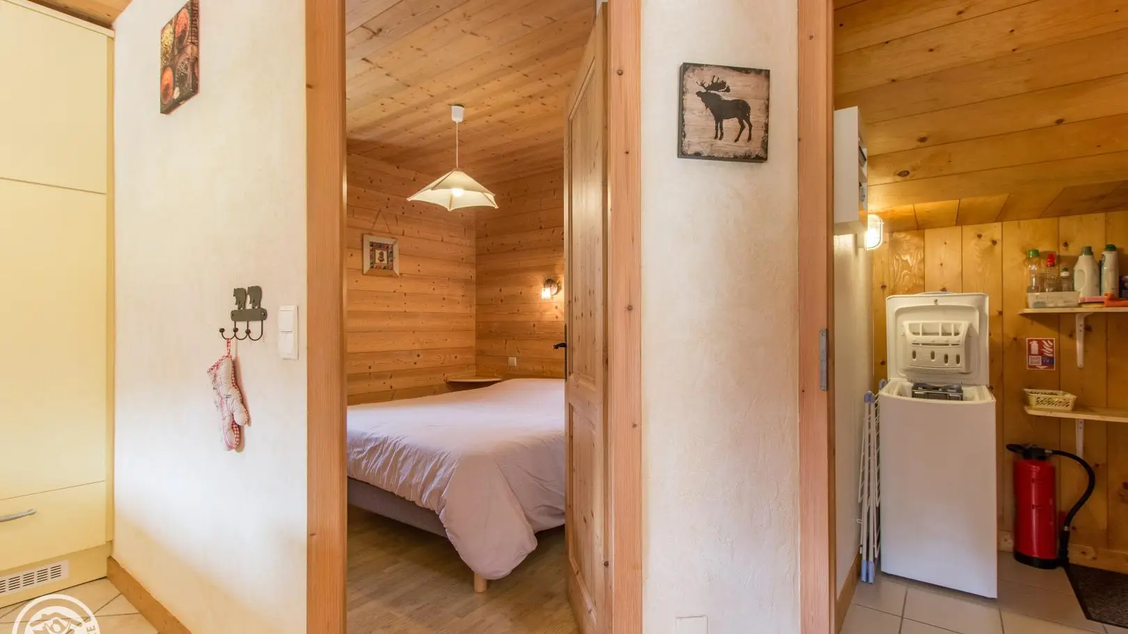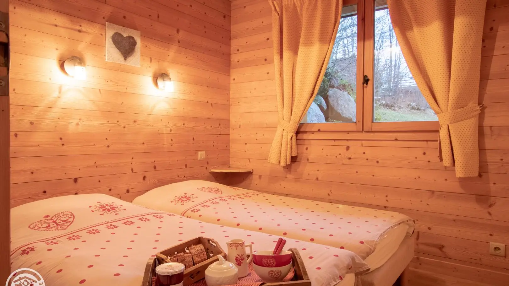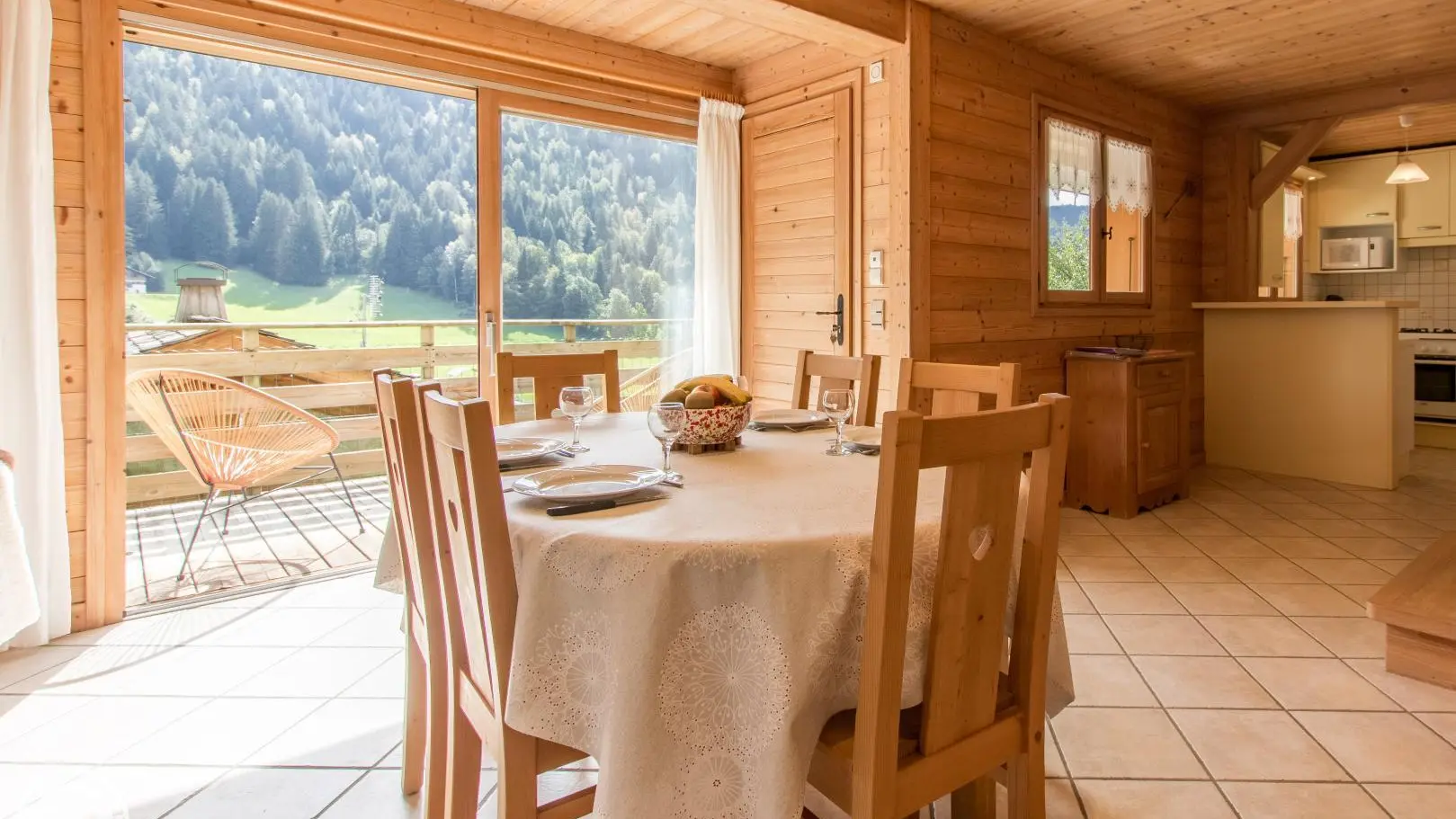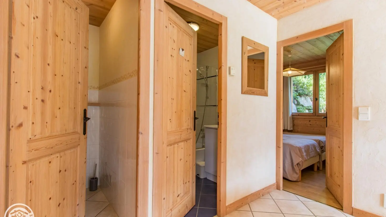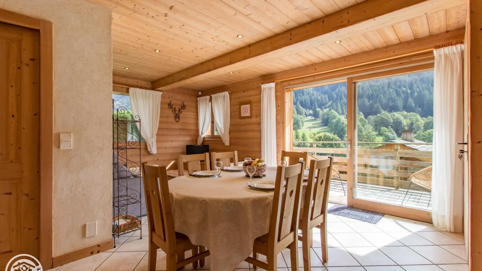 On the heights of the resort, gîte (55m²) facing south facing the Aravis range and fitted out on the garden level of the owners' chalet.