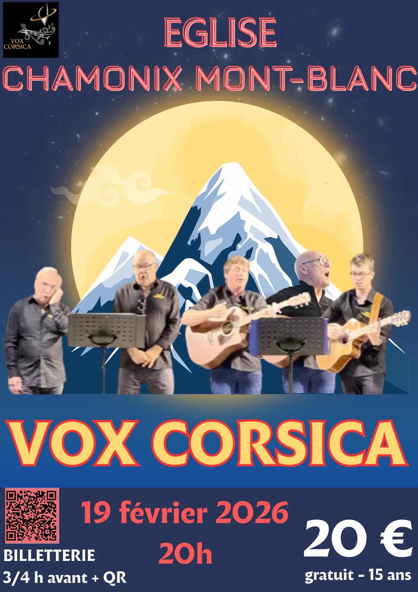 Tickets : on place / QR Code / lien : https://my.weezevent.com/vox-corsica-chamonix-mont-blanc-19-fevrier-2026