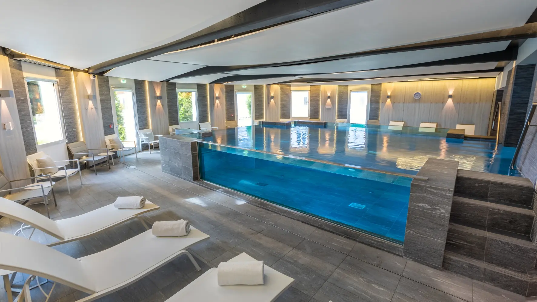 The wellness area, with its swimming pool, sauna, steam room and experience shower, invites you to enjoy moments of pure relaxation. And to extend the sensory adventure, in a solo or duo cabin, the spa team offers a range of beauty treatments and rituals designed by Alpeor& Phytomer.