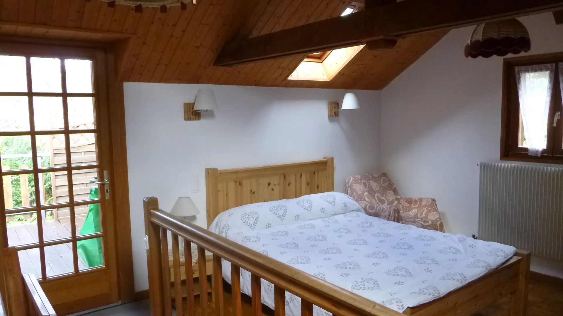 Independent studio for 2 to 3 people on 2 levels (ground floor+1), quiet, in a house 150 m from the lake, private courtyard, large terrace, 3 minutes' walk from the beach. Close to cycle path.