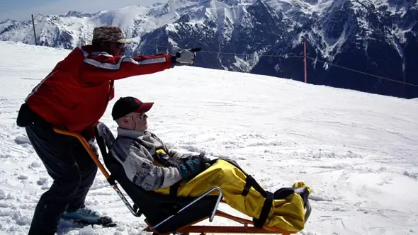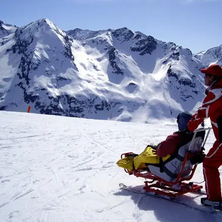 Introduction to wheelchair skiing for people with reduced mobility, the handicapped, the elderly, in private lessons.