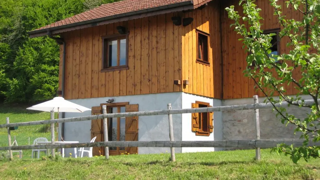 Near Lake Geneva et ski resort at Thollen-les-Mémises, in countryside with view of Swiss hills, gîte (40m2, separate entry) in a converted former granary at garden level of owners' house. Fitted kitchen (microwave) opening onto living room (double stowaway bench bed), bedroom (double bed), shower room, WC. Heating: electric et solar (gîte uses renewable energy). Bed linen supplied. Terrace, garden, barbecue. 10% reduction for stays of 3 weeks. Thollon 3km, Bernex 10min, Les Portes du Soleil 30min, Swiss border 20min, Evian-les-Bains (spa town, beaches, fitness centre) 8km. Leisure centre at Lac de la Beunaz 3km.