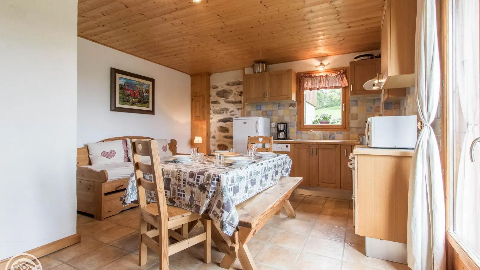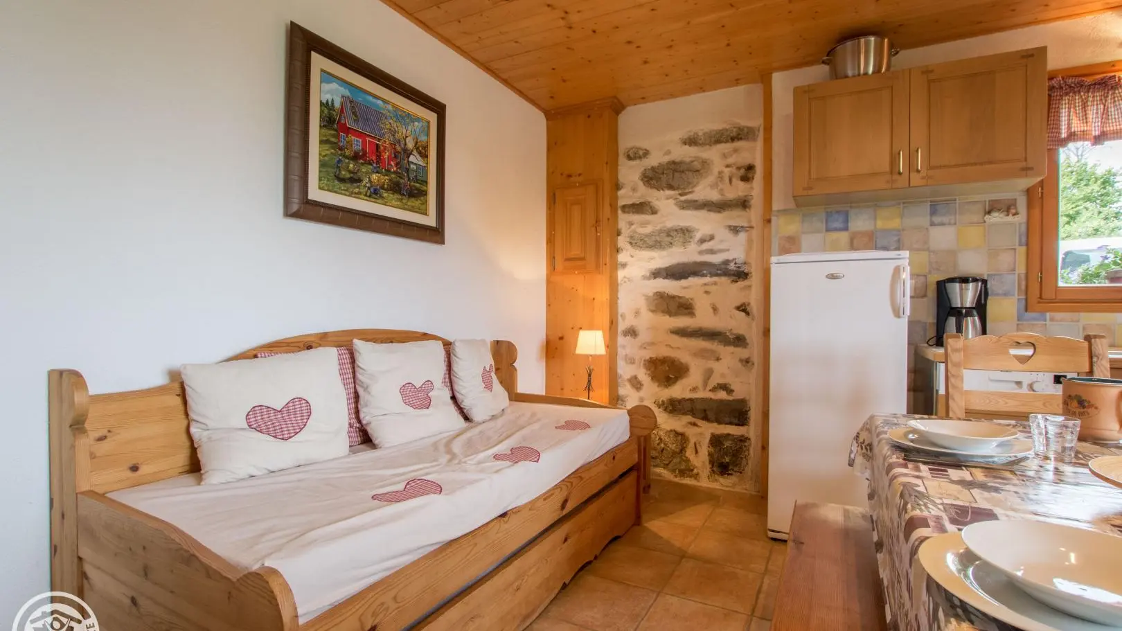 In a quiet area, pleasant 40m² gîte on the ground floor of the owners' house. Mountain atmosphere and decor. Independent entrance via private terrace. Kitchen opening onto living room (2x1 person sofa bed), bedroom (1 x 140cm bed). Bathroom (shower), separate WC. Electric and solar heating. Gîte using renewable energy. Sheets and towels provided. Sheets and towels can be changed during your stay for an additional charge (12 € double bed sheets / 10 € single bed sheets / 5€ towels). Garden, private terrace, garden furniture, barbecue. Private parking. Possibility of renting for 4 people at no extra charge (contact Gîtes de France reservations department). Ski: 3 km from Thollon, 10 min from Bernex, Portes du Soleil 30 min. Swiss border 20 min. Evian les Bains beaches and thermal baths 8 km. La Beunaz leisure center.