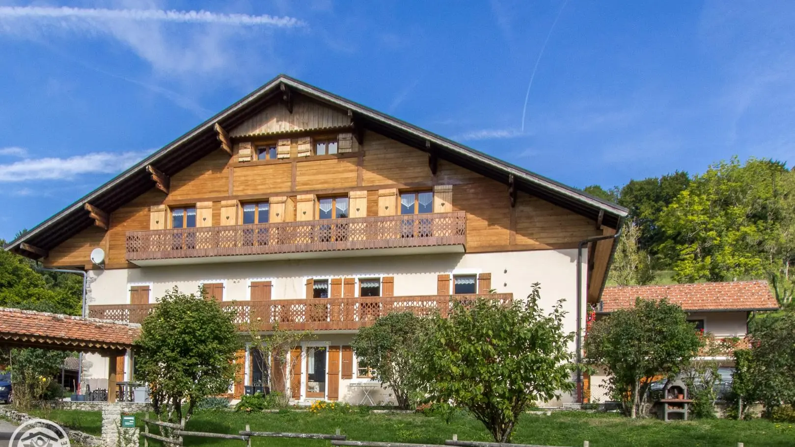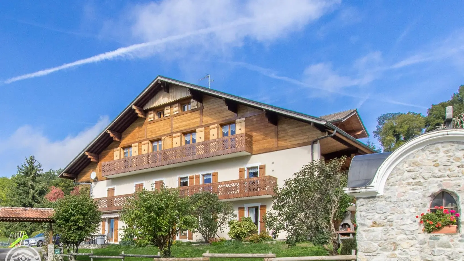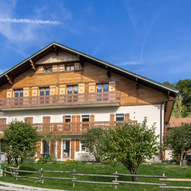 In an old renovated country farm, between lakes and Chablais peaks, mountain atmosphere for this gite (85m² + attic) on the 2nd floor (1st floor from car park). Farm comprising 1 other gite, the owners' home and 2 year-round rentals. Common entrance from the back of the chalet.