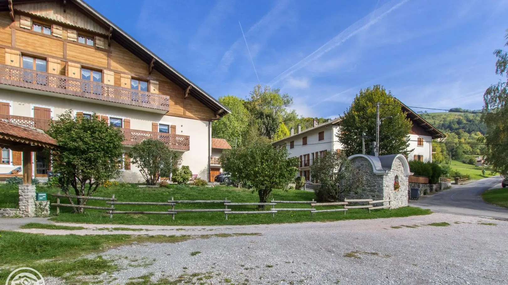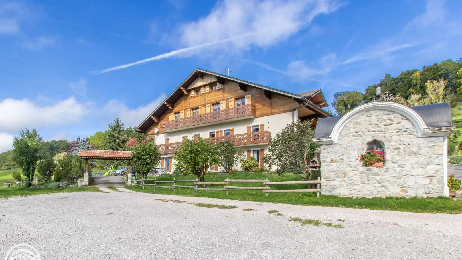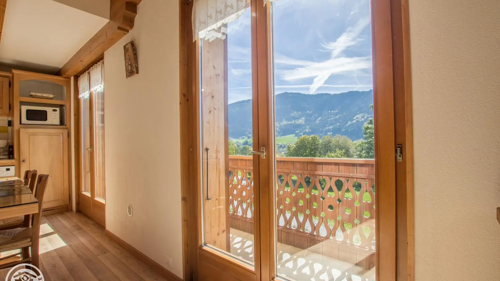 In an old renovated country farm, between lakes and Chablais peaks, mountain atmosphere for this gite (85m² + attic) on the 2nd floor (1st floor from car park). Farm comprising 1 other gite, the owners' home and 2 year-round rentals. Common entrance from the back of the chalet.