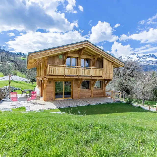 Individual chalet of 110m2 (+ garage, cellar and laundry room), fitted out near the village center of Combloux (1.2km).