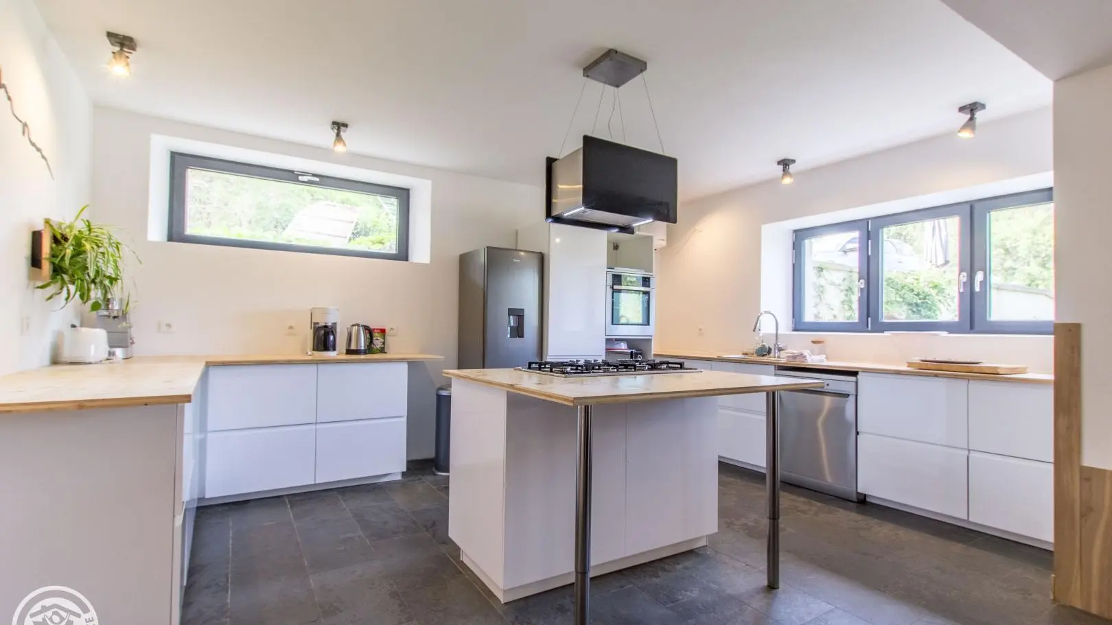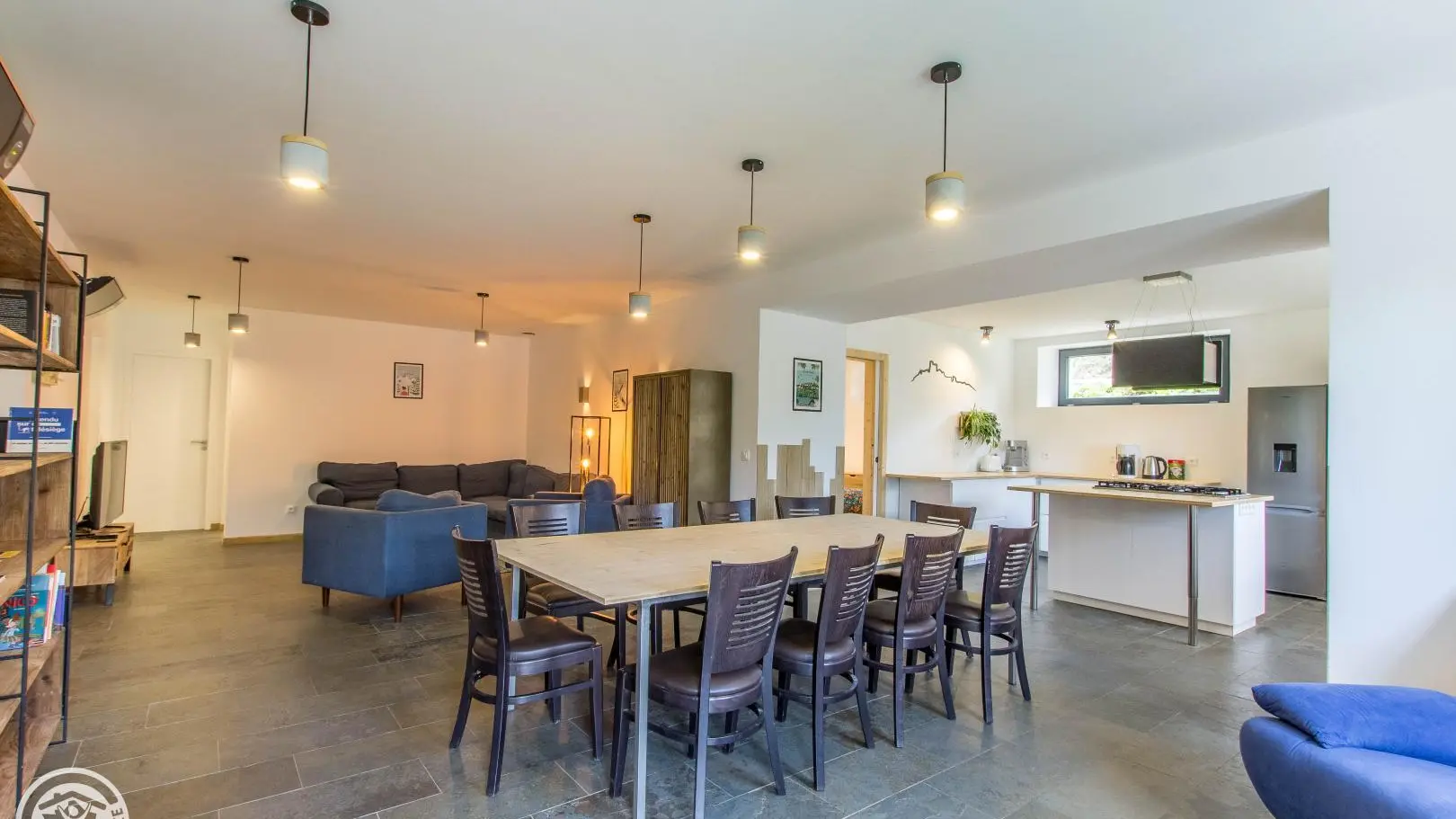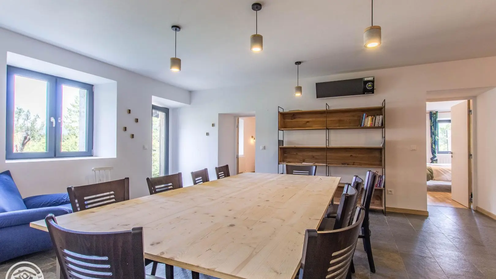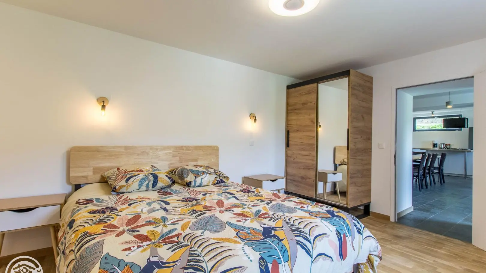 The cottage has its own independent entrance (access via 4 steps): fitted kitchen open to the living room/lounge area (TV, corner sofa, armchairs), bedroom 1 (1 160x200cm bed), bedroom 2 (1 160x200cm bed) , bedroom 3 (2 beds 90x190cm), bedroom 4 (4 beds 90x190cm).
