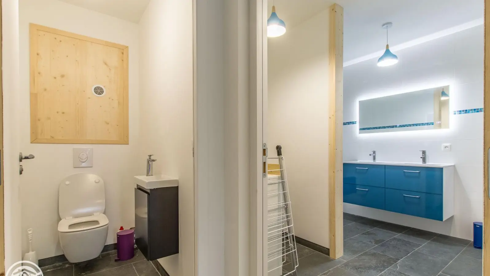 Parking in the courtyard in front of the gîte. Ski room.