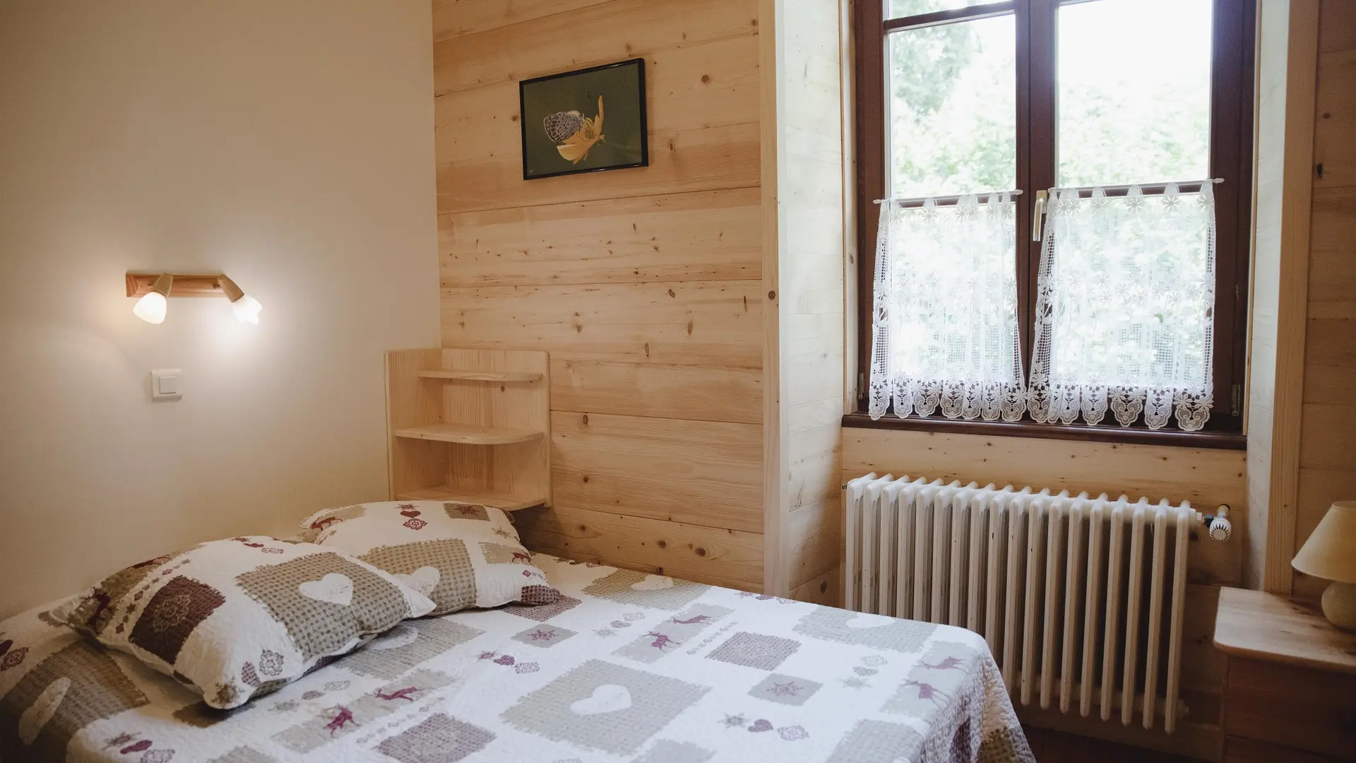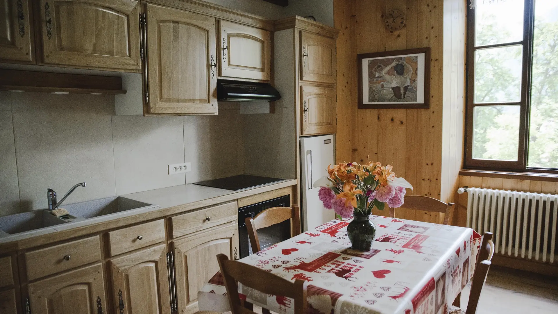 Spacious and recently renovated gîte of 43m², situated on the first floor of a character house dating from 1767, comprising the gîtes and the owners' accommodation, on the sunny hillside of Marignier in the centre of the Arve valley. Views of the Môle and Andey mountains.