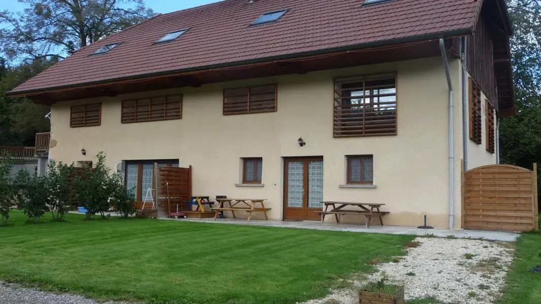 Panoramic view on the summits of Annecy and Massif of Semnoz (skiing, paragliding, snowshoeing). Farmhouse transformed into a 4 gites. 92 m2 cottage built in triplex. Ground floor: Kitchen (m-wave) / dining room / living room, cloakroom, wc. 1st floor: relaxation, Ch1 (1 double bed), bathroom, wc. 2nd floor: Ch2 (1 bed 140), Ch3 (2 beds 90). Central heating, terrace furniture, barbecue, garden. Sheets, towels provided, beds made. Environmental approach on water management. City and Lake Annecy at 10 km. Swimming pool and sports activities in Seynod. Site quiet. Gorges du Fier, Château de Montrottier. Farm owners in 10 mn on foot.