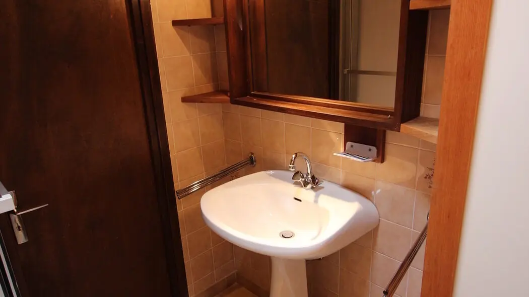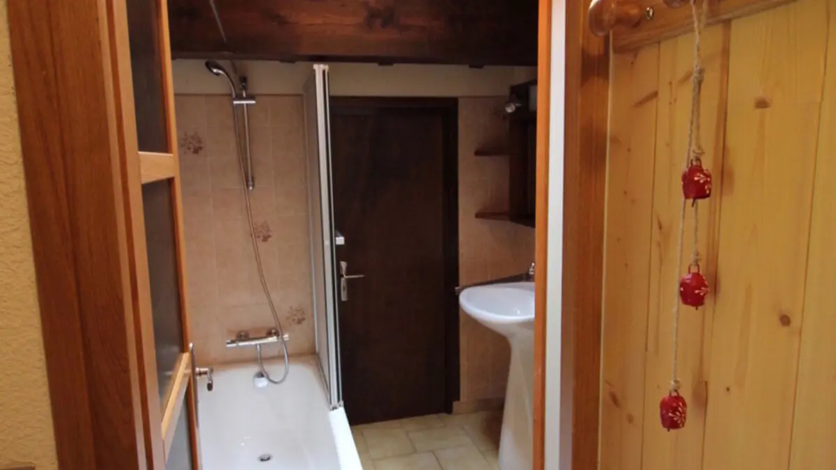 - Outside: west-facing balcony with views of Grand Croisse Baulet and Tête du Planet, equipped with retractable table, 2 chairs, ashtray