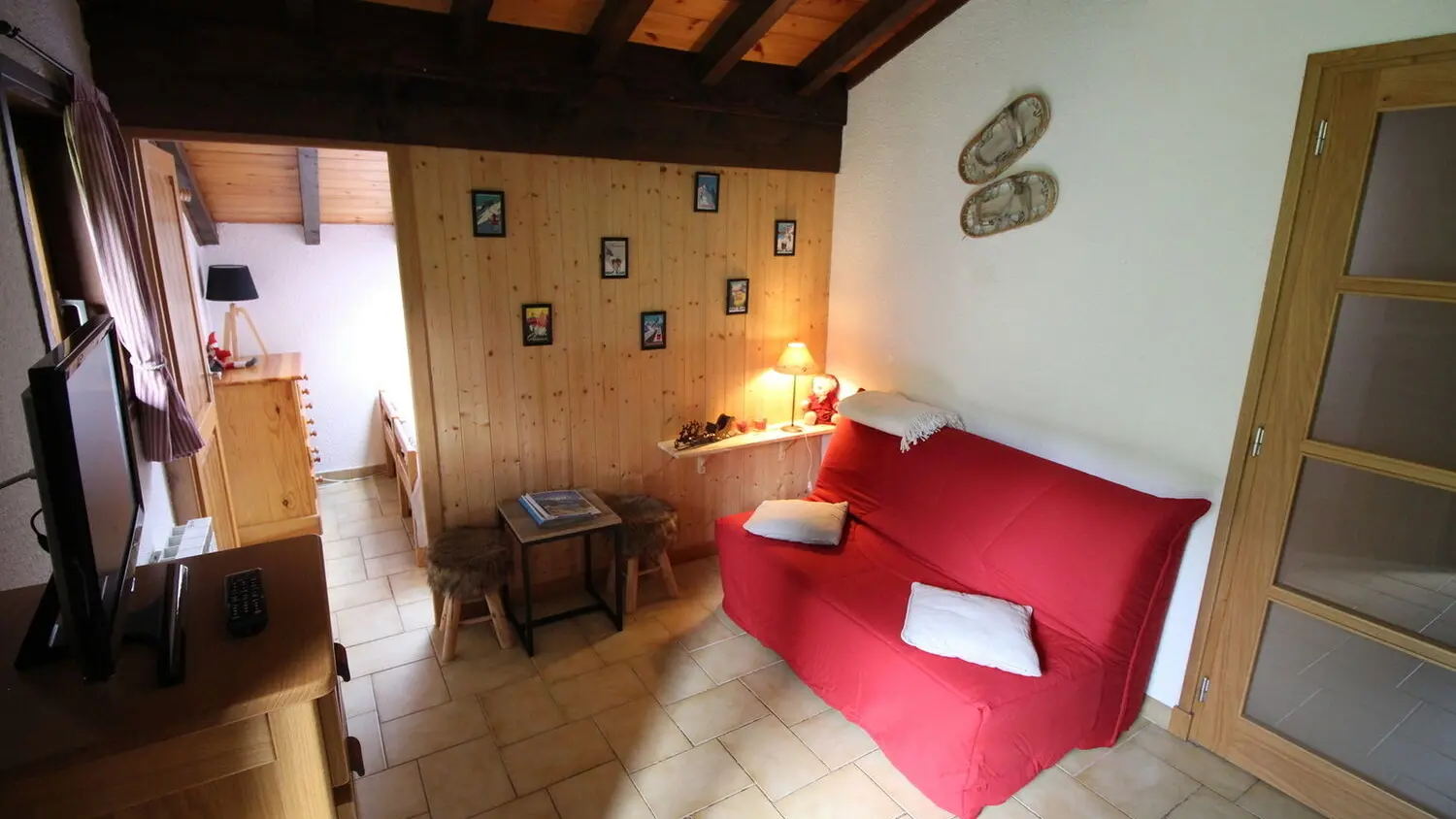 2-room apartment for up to 4 people. Located on the second floor in a residence of 2 chalets close to the ski area, ticket offices and ESF meeting point. Shuttle bus stop nearby in winter.
