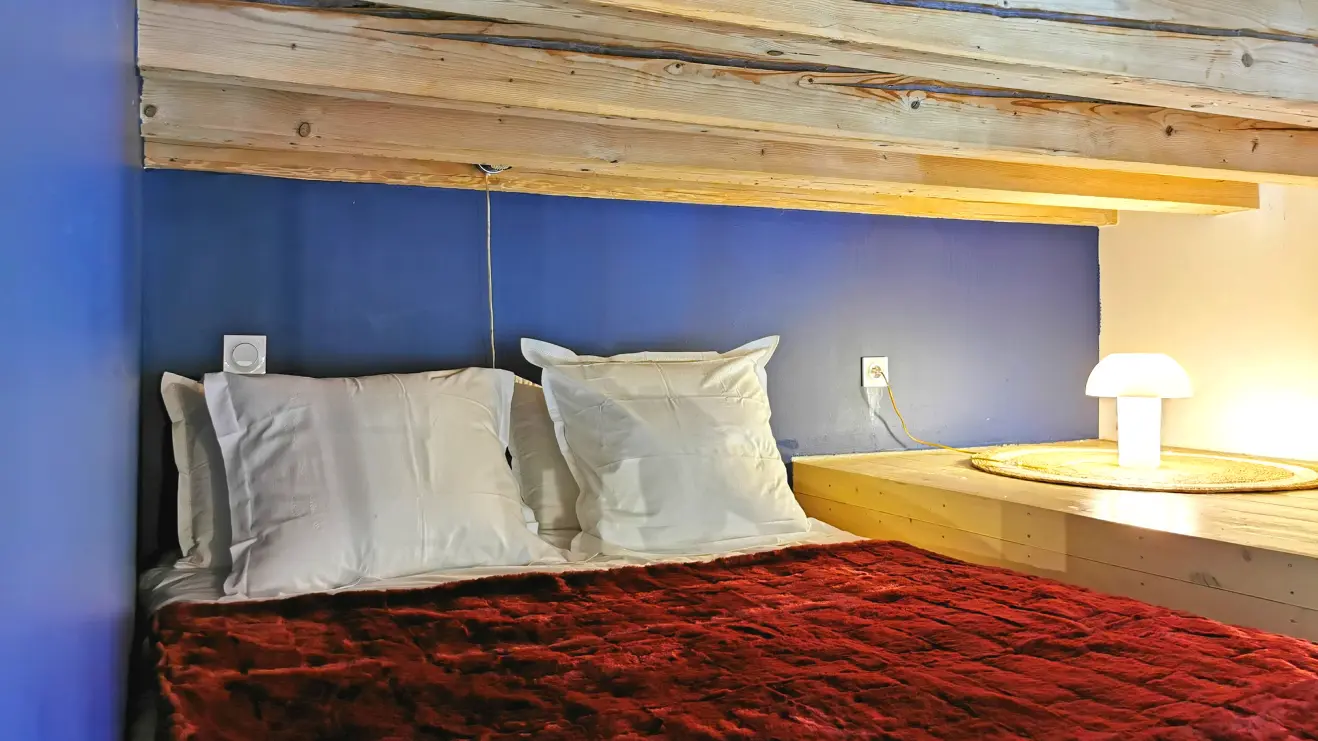 Higher up, the mezzanine with a large double bed (140x190).