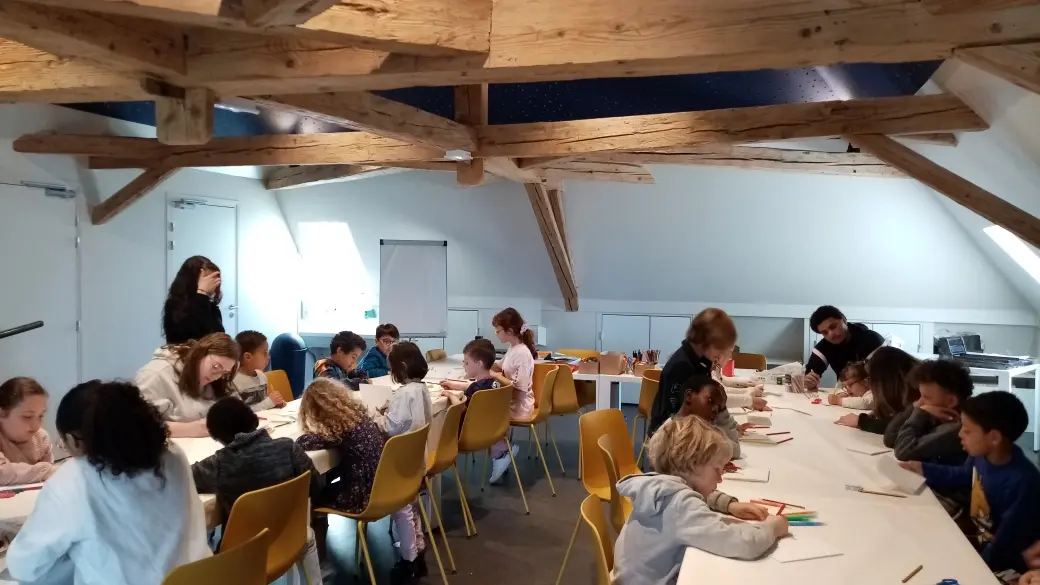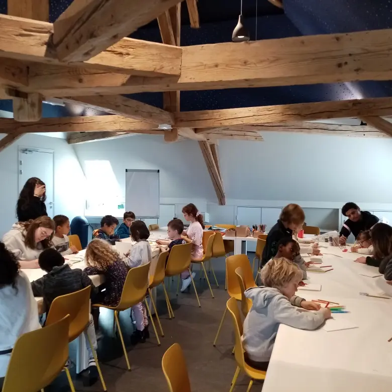 During this day, children discover a special artistic world, that of the artist's book. The dialogue between poet and artist is the common thread running through our workshops and guided tours of the various sites that make up the Butor Archipelago. We begin with a guided tour of the current temporary exhibition at the Manoir des livres, to introduce visitors to this art form. We then visit the office of writer and poet Michel Butor, where every object is a work of art. The rest of the day is devoted to a poetic stroll through the small village of Lucinges, along wooded paths and narrow streets. During this easy walk, the mediators read poems by local poets in front of the related landscapes. Children can also collect natural elements for the following workshop. The practical workshop consists in creating an Accordion Book inspired by the poetry and elements collected during the Butorian walk. Students choose a poem and transcribe it using collage, writing and cut-outs. They work individually with different creative tools and leave with their creation.