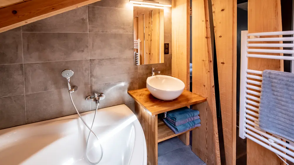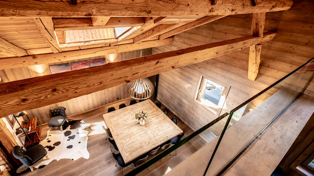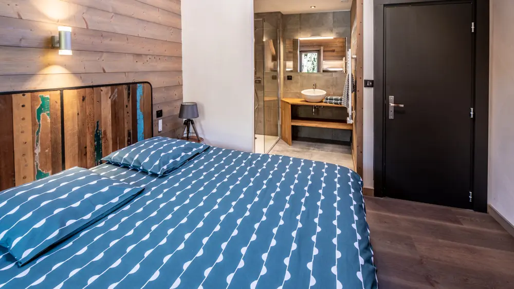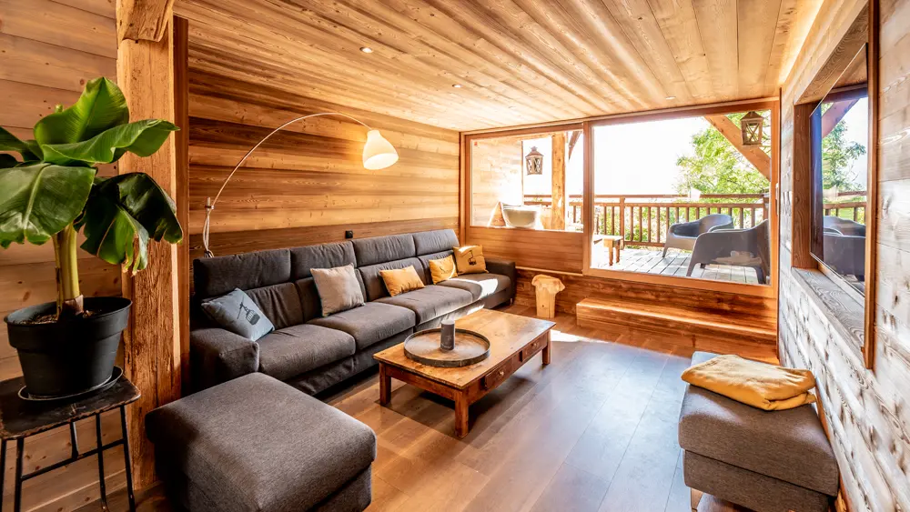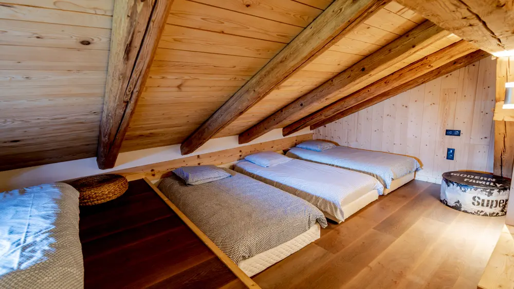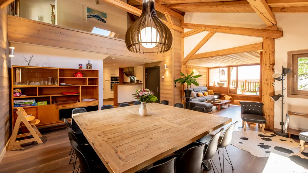 14-person duplex 180m². 5 bedrooms, 2 balconies. South-facing, views over the entire valley.