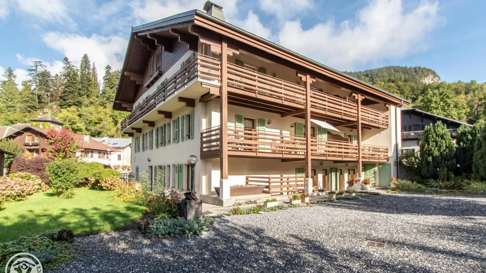 In the heart of the village of Samoëns, in one of the oldest residences in the village (1660). House comprising 5 gites and the owner's accommodation. Very comfortable gîte of 80m2 on the 1st floor with integrated kitchen open to living room (sofa). Bathroom, shower room, 2 separate toilets. The beds are made upon your arrival. Bedroom 1 in old chapel (3 beds 90x200 cm), bedroom 2 (1 bed 160x200 cm). Terrace (11m2) with garden furniture. 500m2 wooded park, flower gardens, garden furniture. Parking in the property. Samoëns - Grand-Massif ski resort (gondola departure 700m), 5 linked resorts. Cross-country skiing at 400m. Free ski-bus shuttle at 300 m. Botanical garden at 300m. Non-smoking cottage. 2 electric car charging stations 50m from your gîte (place/parking du Criou).