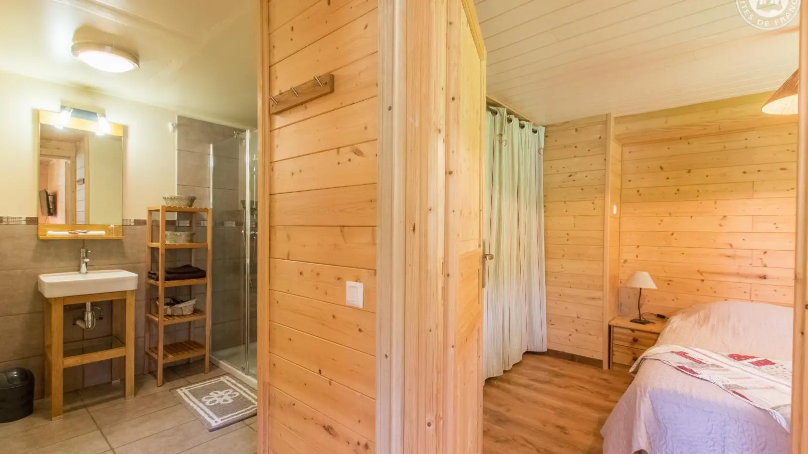 Independent access downstairs by several steps. Fitted kitchen open to living room (bench-z with a comfortable bed 160x200cm, Tv), bedroom (2 beds 80x200cm twin in 160cm), Shower room (shower with wc).