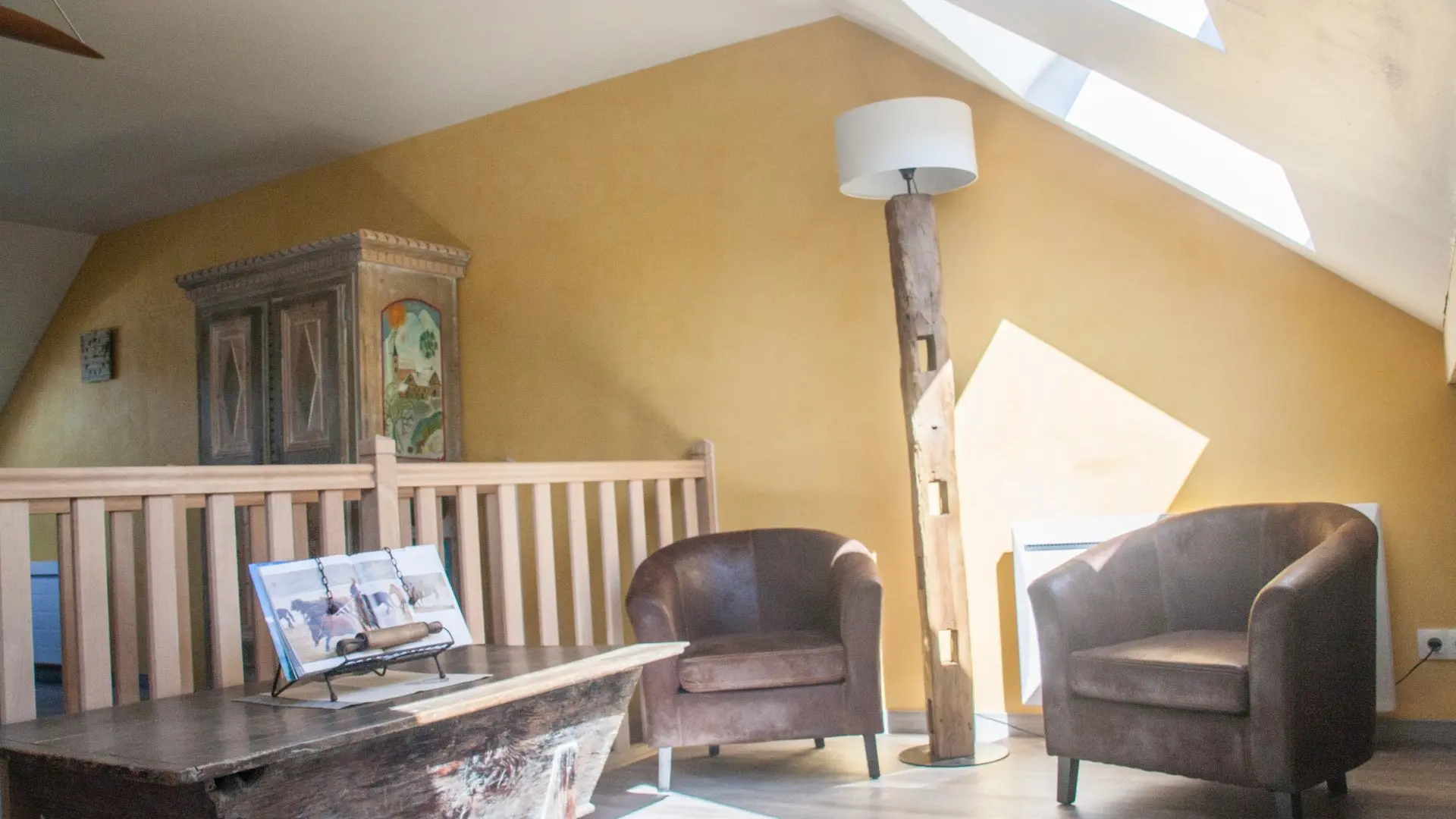 Four spacious and cosy rooms, each with private bathroom and separate toilet, can accommodate up to 3 people (one of them 4). A large common living room with a large work or game table and a cosy reading corner with numerous books and board games is available to guests.