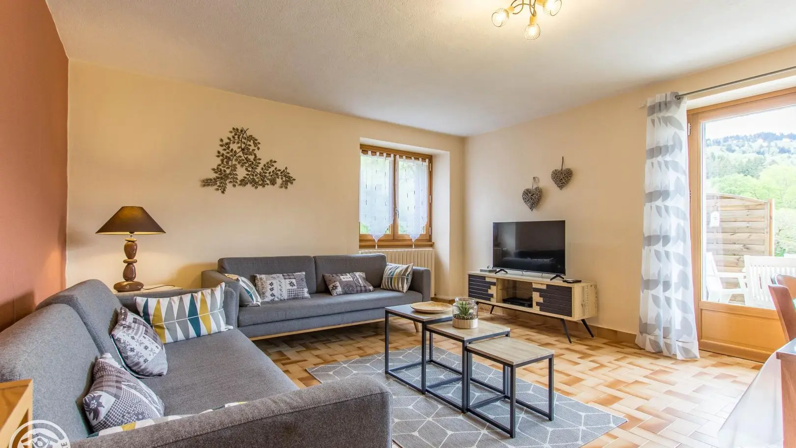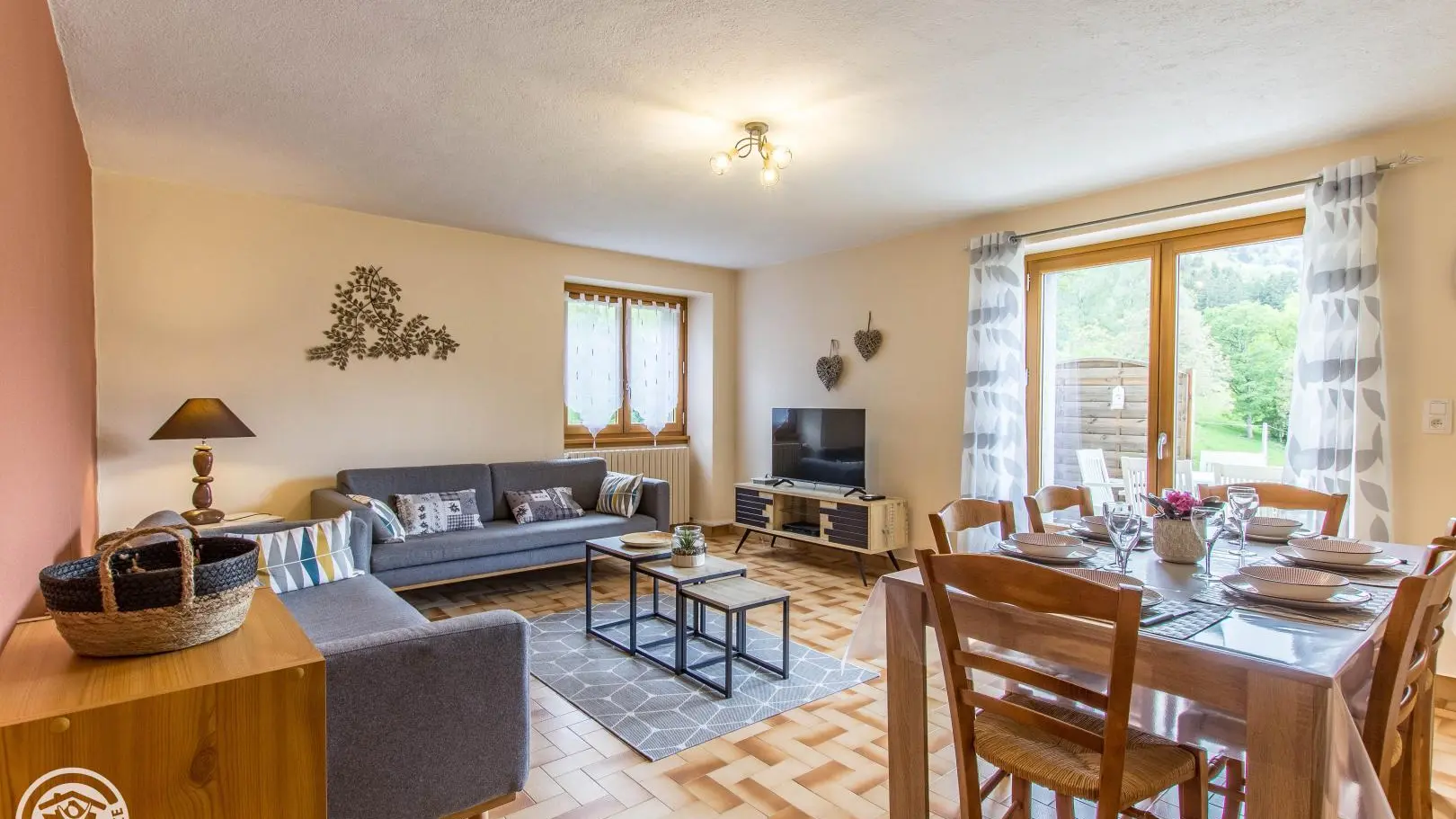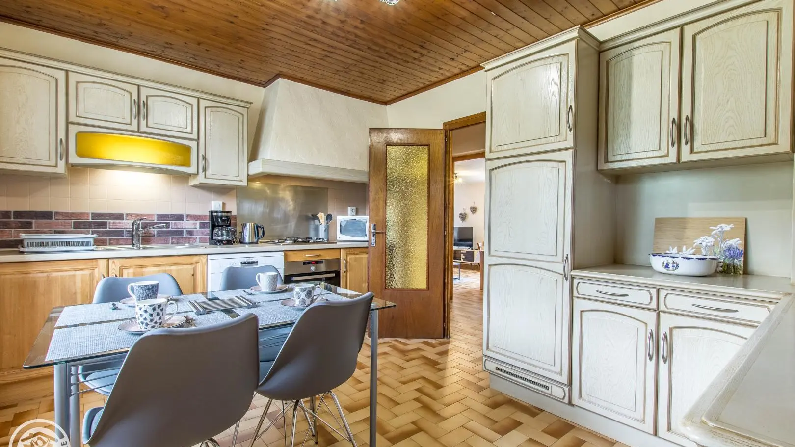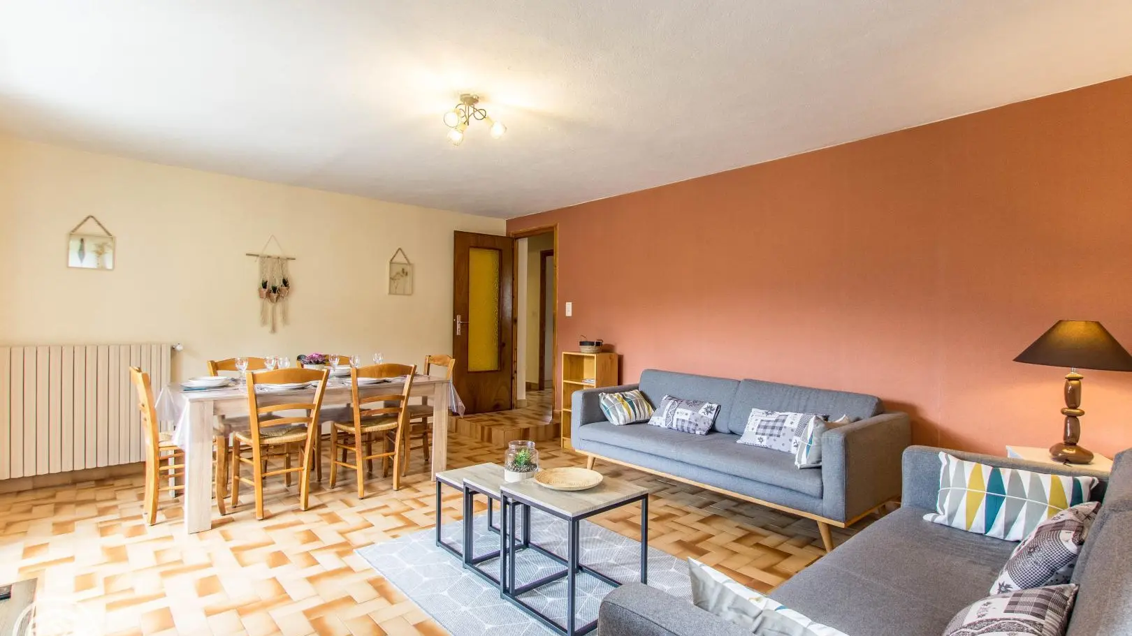 Gîte of 97m2 laid out on one level (1 step in the gîte), on the ground floor of an old renovated country farmhouse also including the owners' accommodation (upstairs).