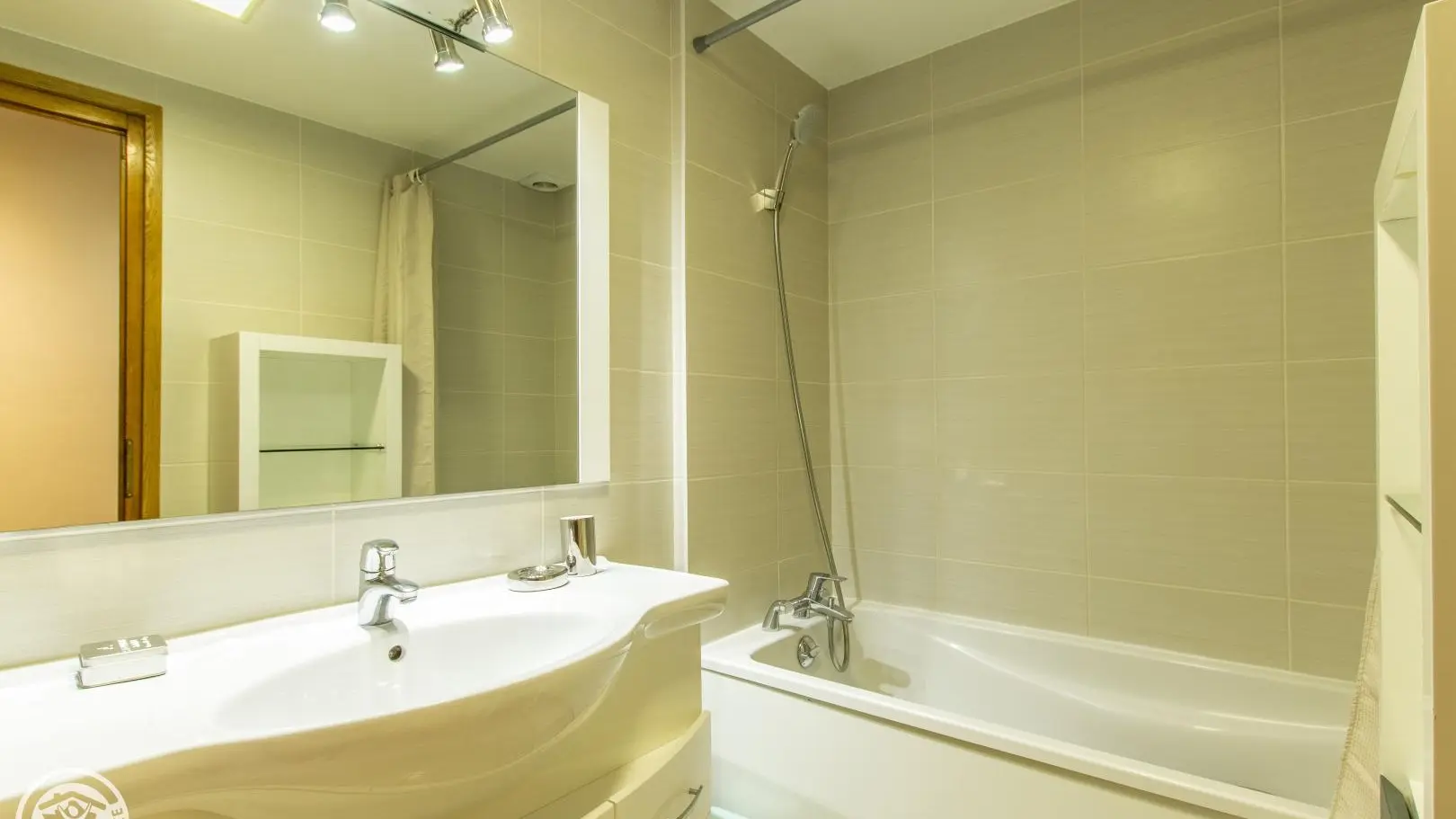 Entrance hall, independent fitted kitchen, living room (TV, sofas, internet box, dining area), bedroom 1 (1 bed 140x190cm), bedroom 2 (1 bed 140x190cm), bedroom 3 (2 beds 90x190cm), bathroom ( bath), separate wc.