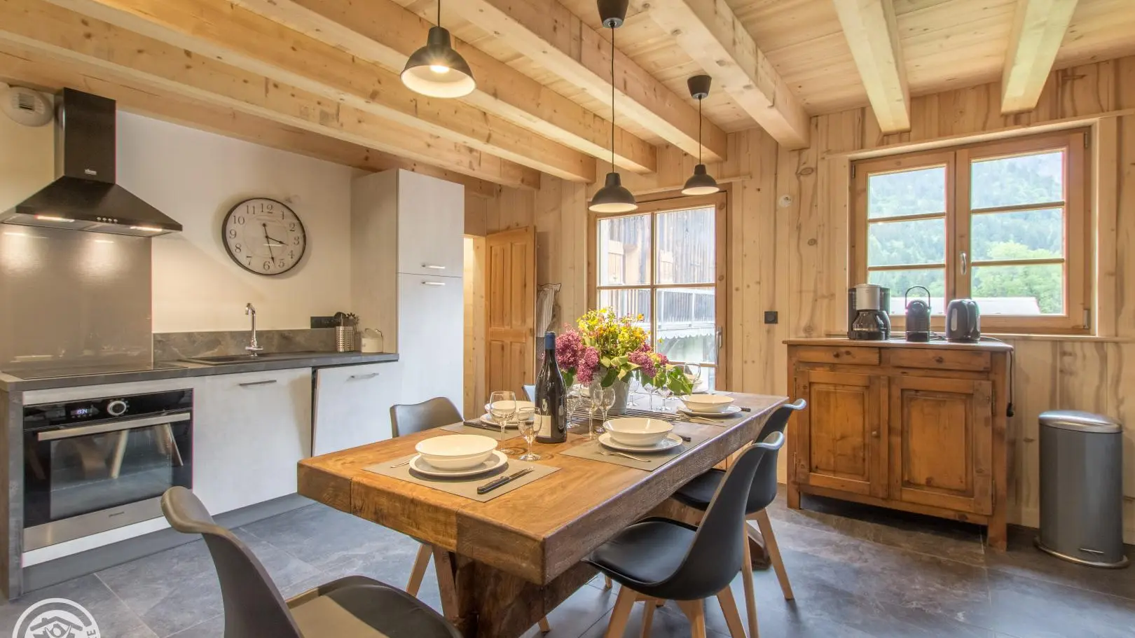 Gite (94m2) on the 1st floor of an old renovated Savoyard farmhouse also including another gite on the ground floor, as well as the owner's accommodation.