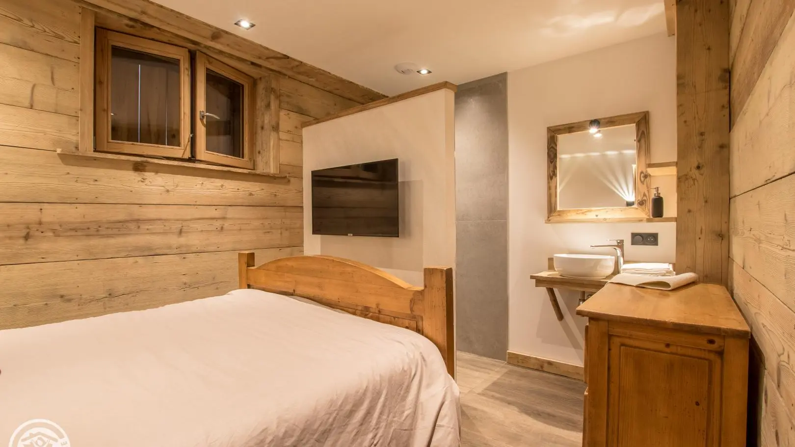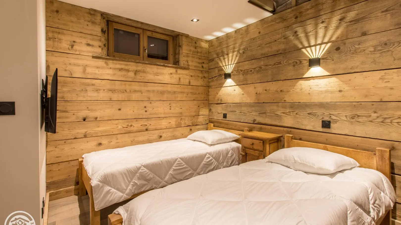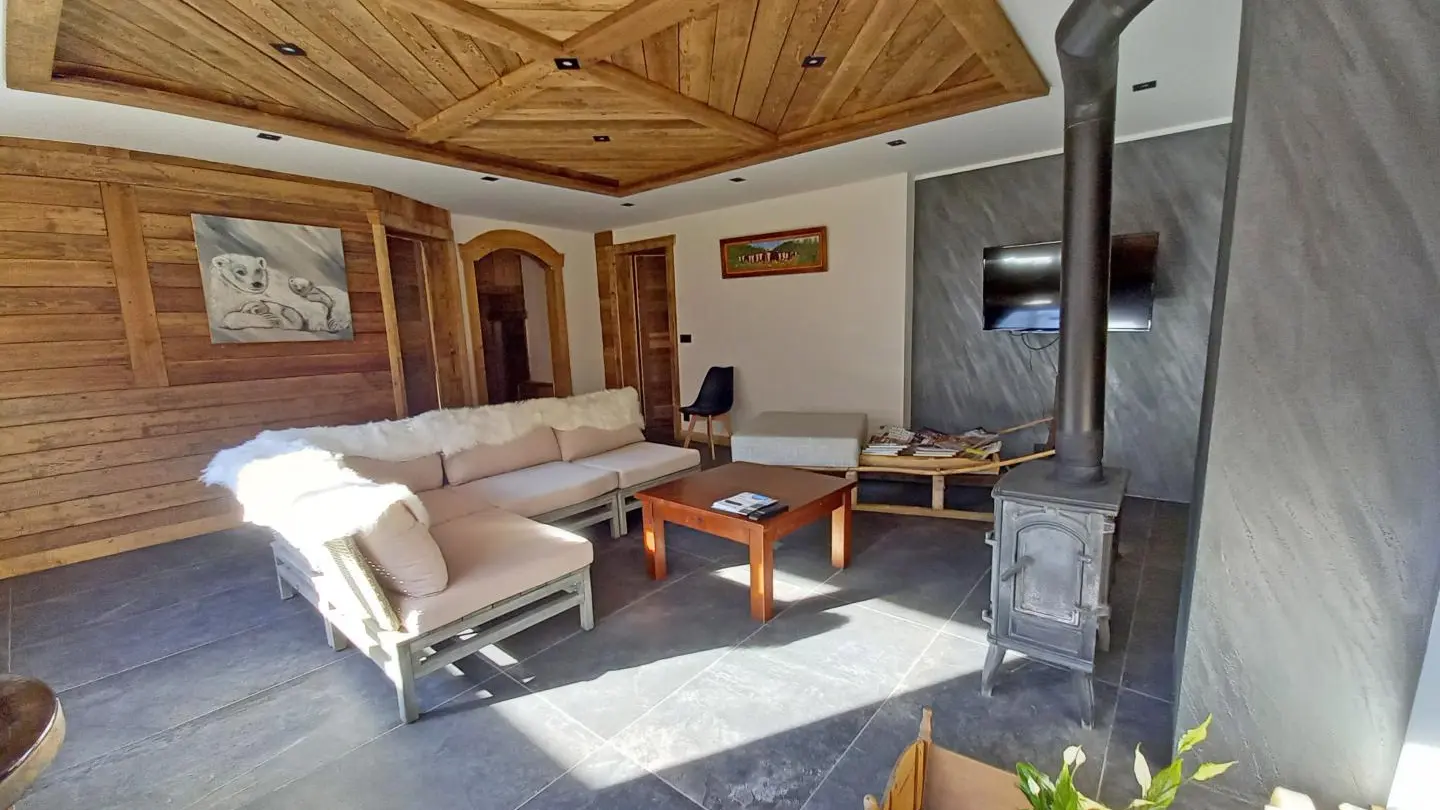 Integrated kitchen with dining area, living room (TV, wood stove, convertible sofa offering an extra bed), bedroom 1 (1 bed 160x200cm, TV, integrated bathroom with shower), bedroom 2 (1 bed 140x190cm, TV , integrated bathroom with shower), bedroom 3 (2 beds 90x190cm, TV, integrated bathroom with shower).