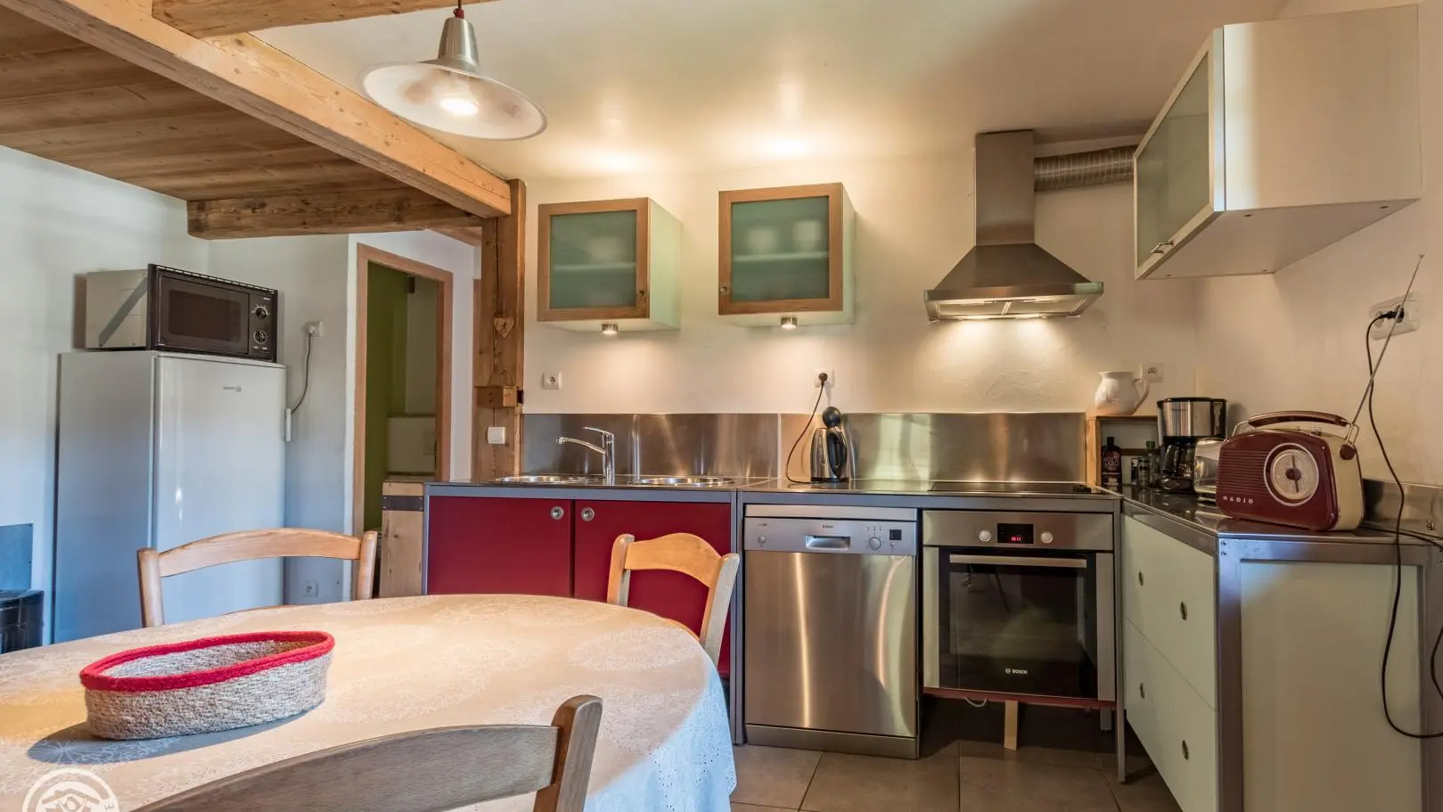 In a former farm in countries also including housing owners, close to the centre of the resort, quality services for this Gîte (58 m²) located at the garden level tastefully restored. Independent entrance. Entrance hall, kitchen open on stay (wood stove, sofa pull-out convertible 2 x 80 or 1x160cm), access to terrace and garden, bedroom (1 bed 140), room da bathroom (bathtub), separate WC. Internet. Living room of garden, barbecue, deck chairs. Local skis in the cottage, laundry. Private parking (at the 1st level floor). Ski track 300 m, bottom 4km, shuttle 150 m, snowshoeing and hiking nearby. Central station (all shops) 300 m. Lake Annecy 27km. 3 weeks-10%.