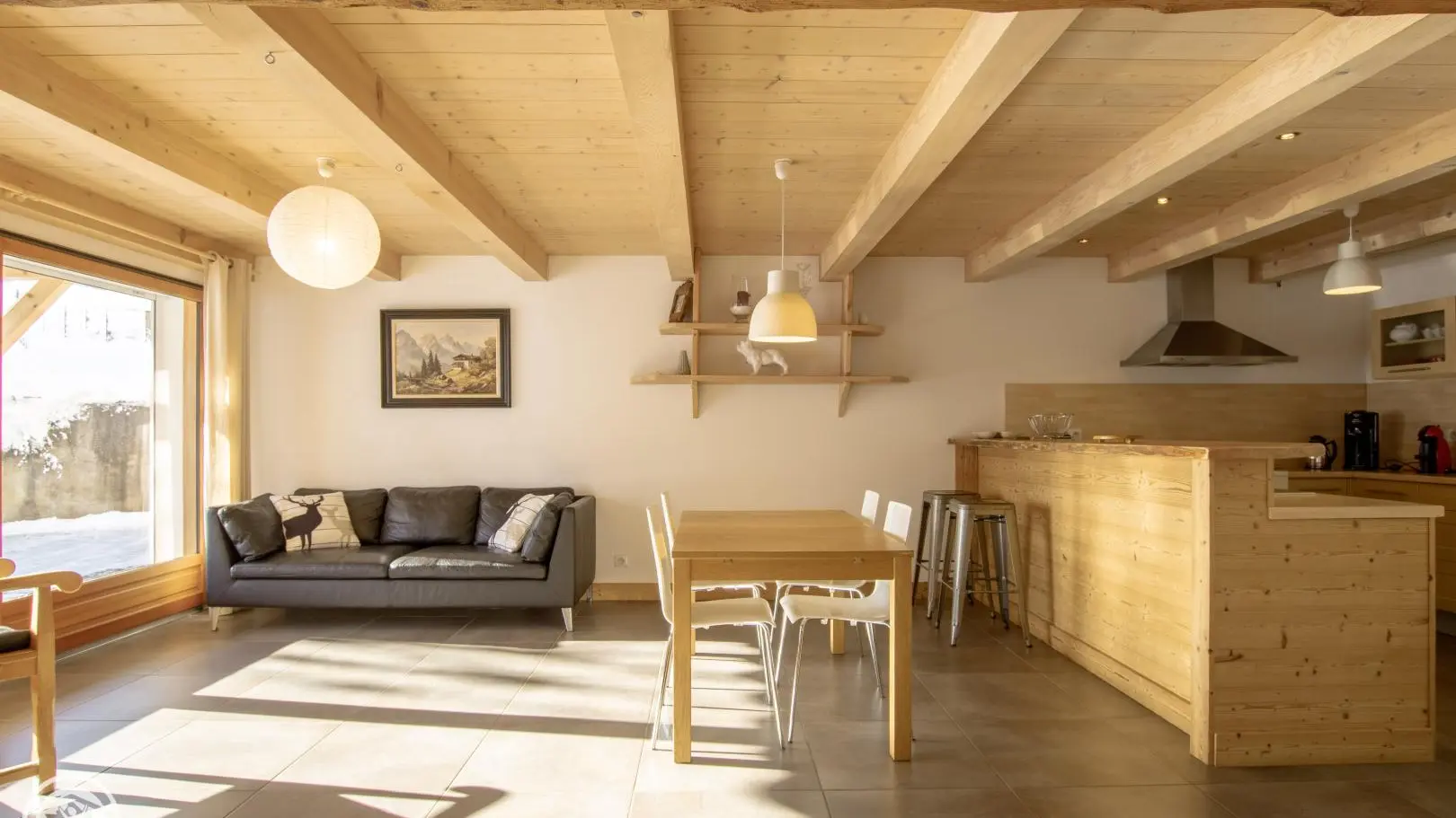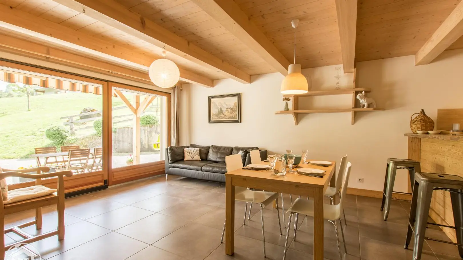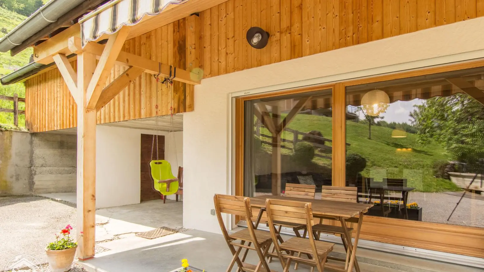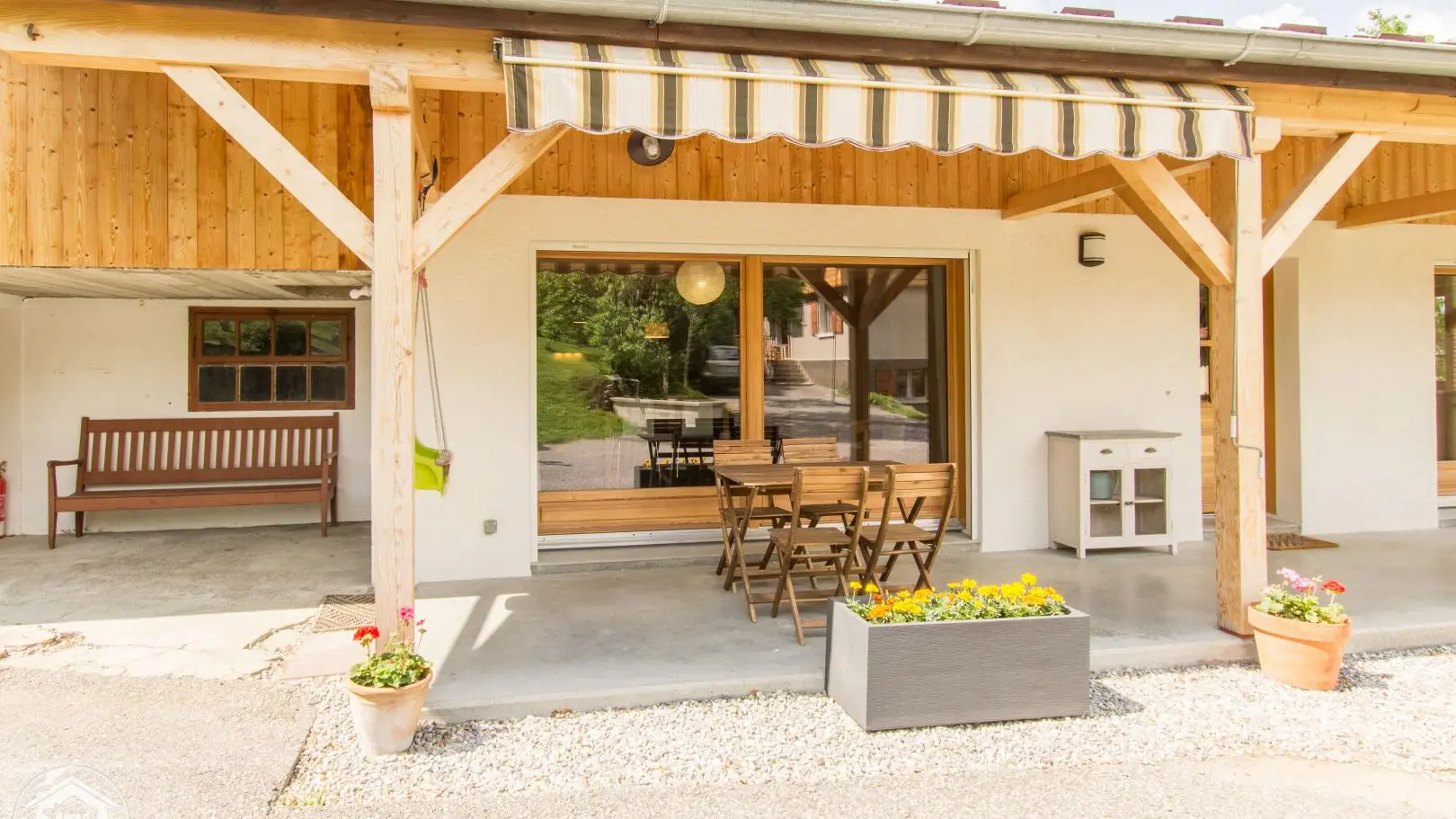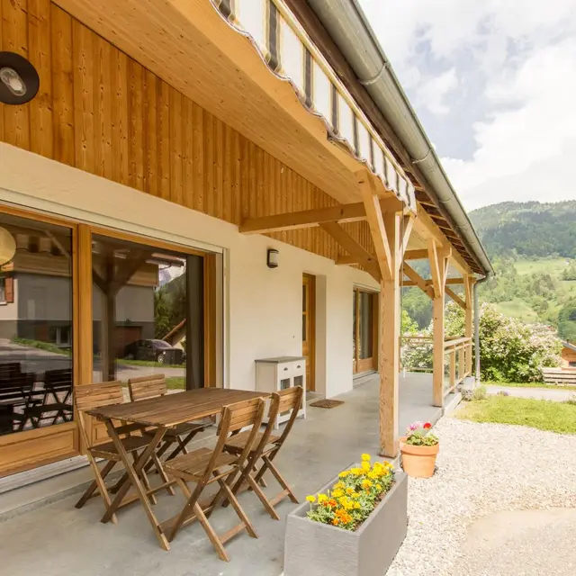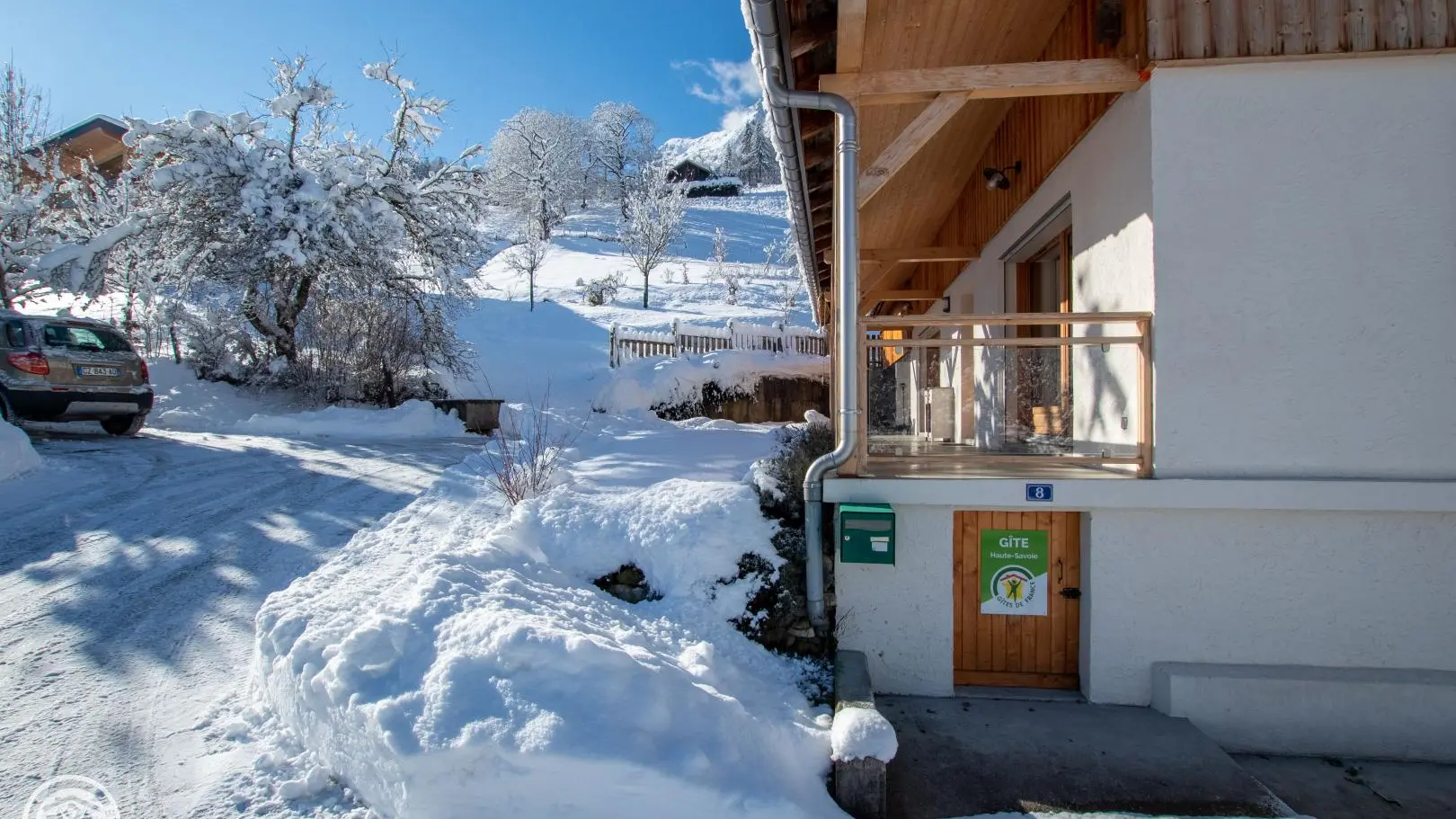 Large covered terrace with garden furniture, barbecue, deckchairs. Garden and land. Private parking, shelter for 2 cars (maximum height: 1.90m). Room available for skis and bicycles.