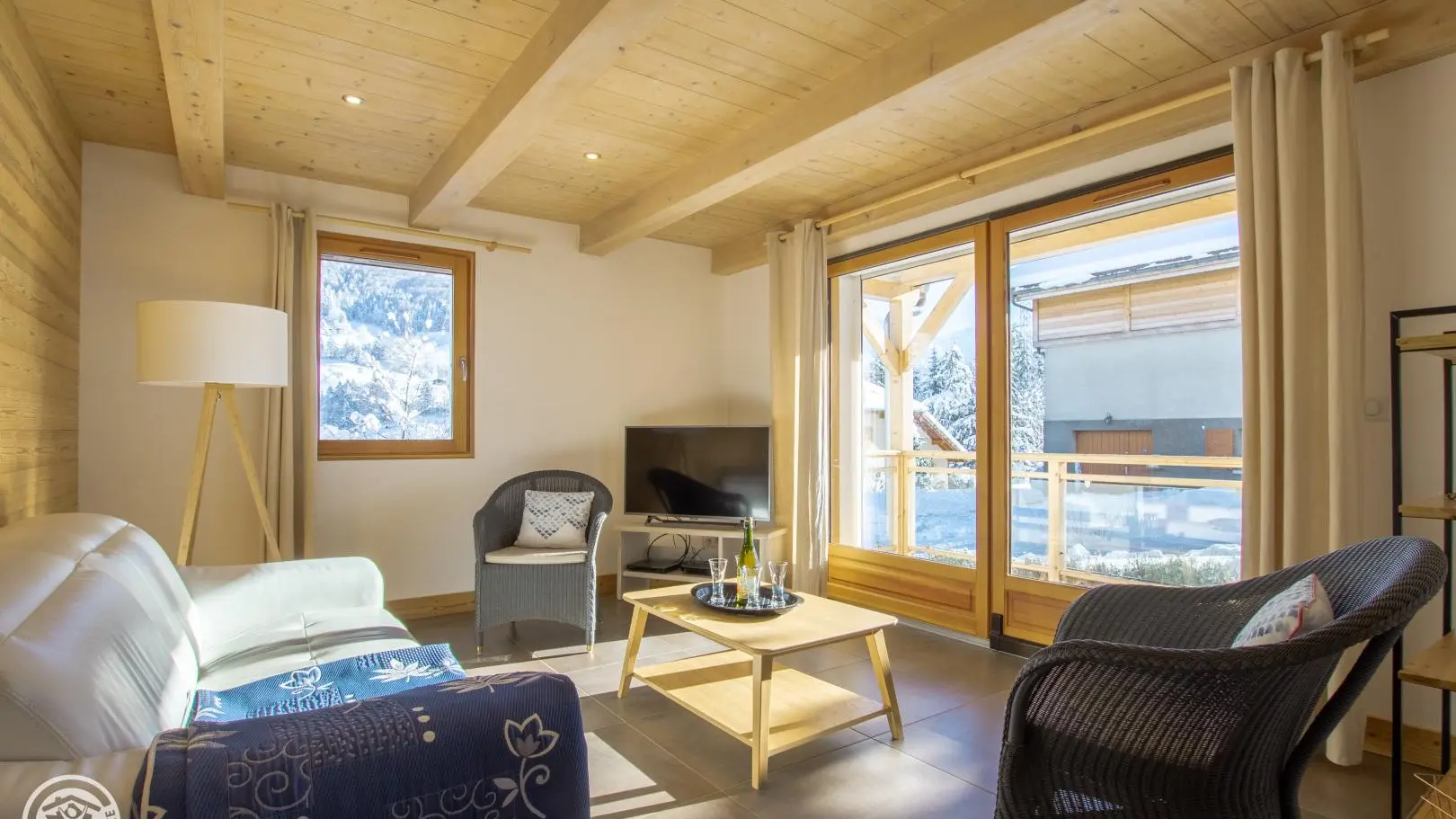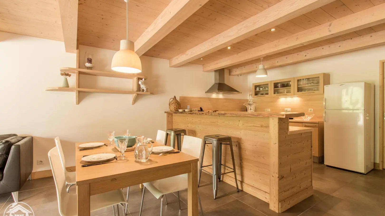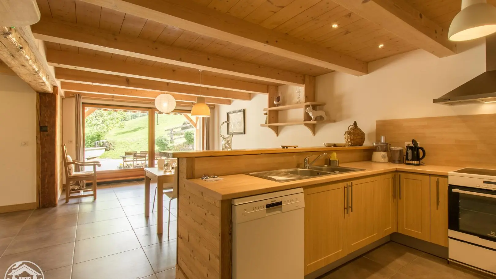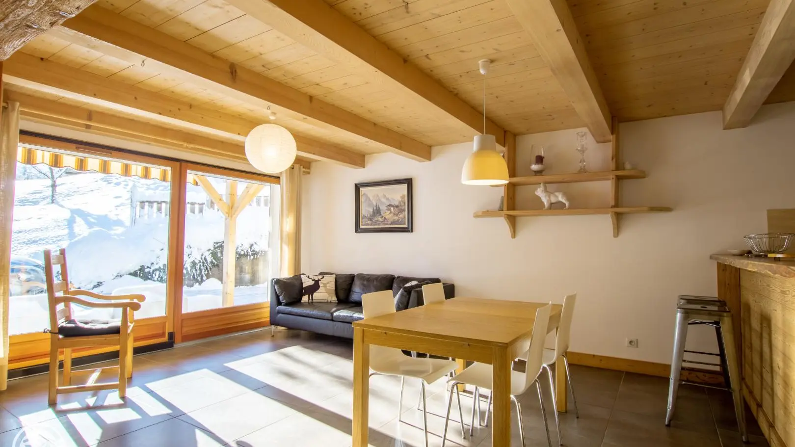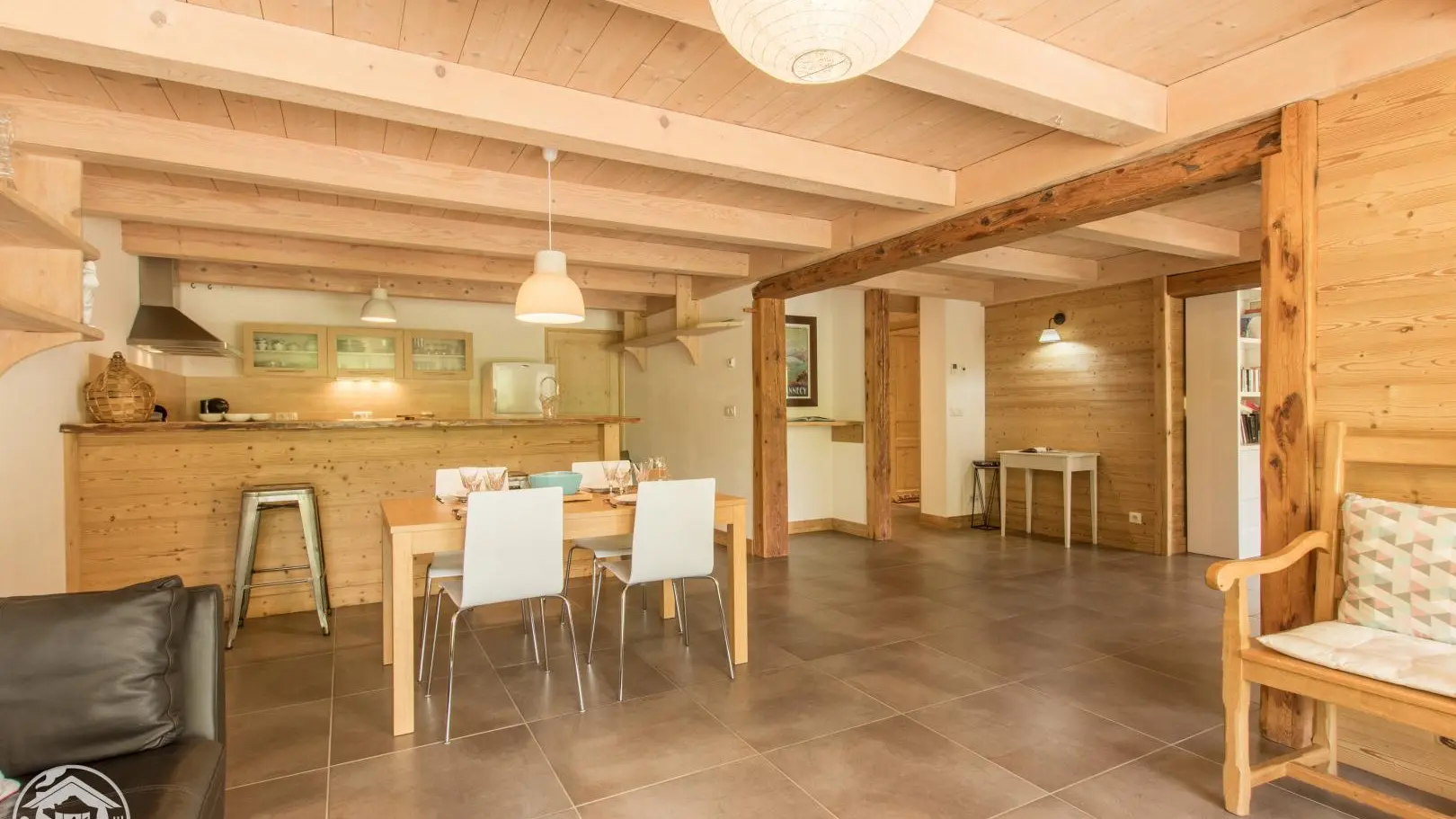 Large covered terrace with garden furniture, barbecue, deckchairs. Garden and land. Private parking, shelter for 2 cars (maximum height: 1.90m). Room available for skis and bicycles.
