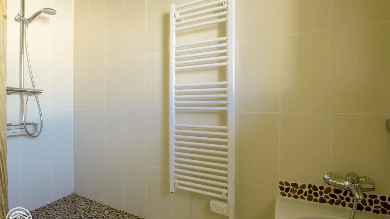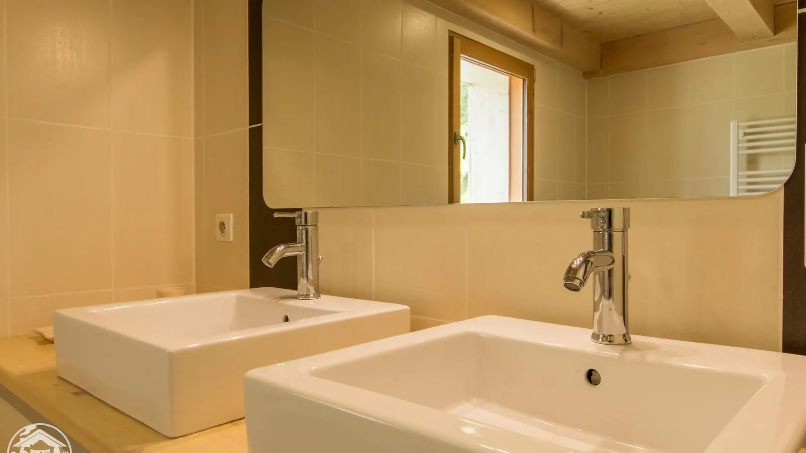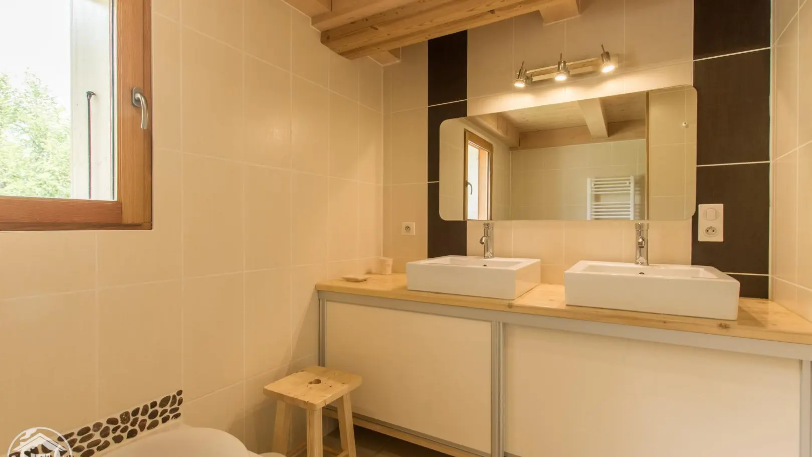 Bathroom with walk-in shower, bath, double washbasin. Independent WC.