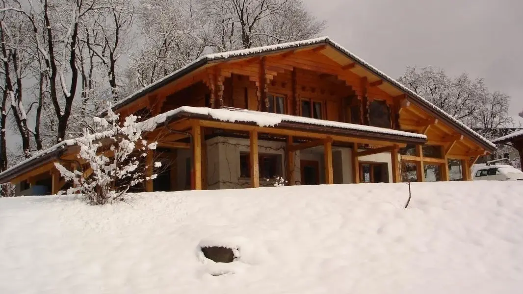 In ideal location to explore mountain countryside, in middle of the Vallée Verte, a self-contained chalet (39m2, tasteful décor, imaginatively finished) above ceramic artist's studio. Lovely open light room containing kitchen et eating areas, lounge (VCR, hi fi) et sleeping area (double bed), shower room/WC. Central heating. Bed et household linen supplied. Enclosed balcony/terrace (panoramic view), garden et parking. 10% reduction for stays of 3 weeks. Access via 150m track suitable for cars. On-site pottery lessons can be arranged. Skiing at Les Brasses et Habère-Poche 5km. No smoking location