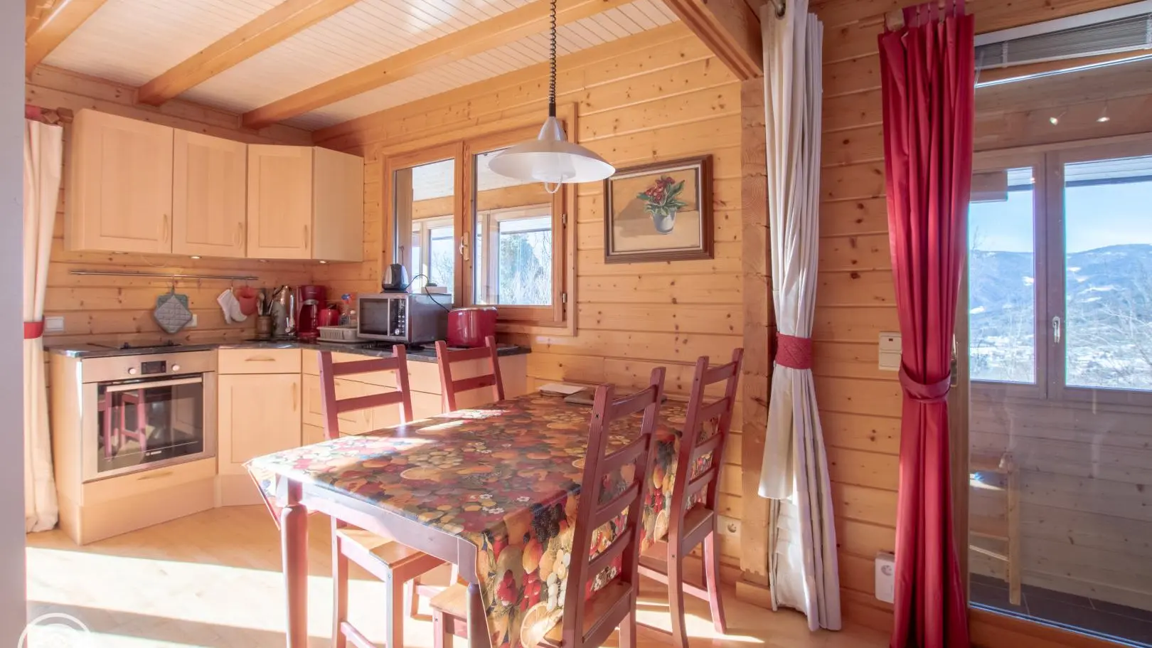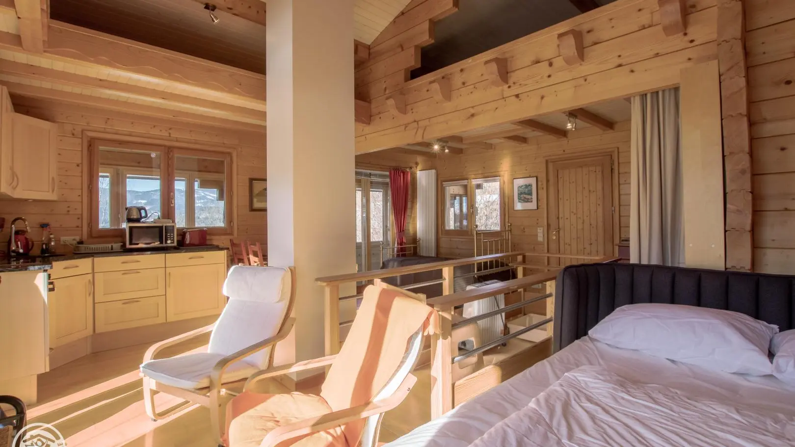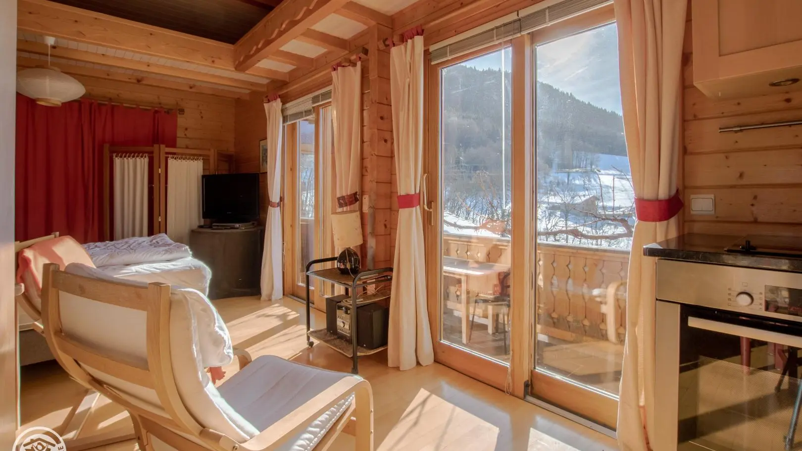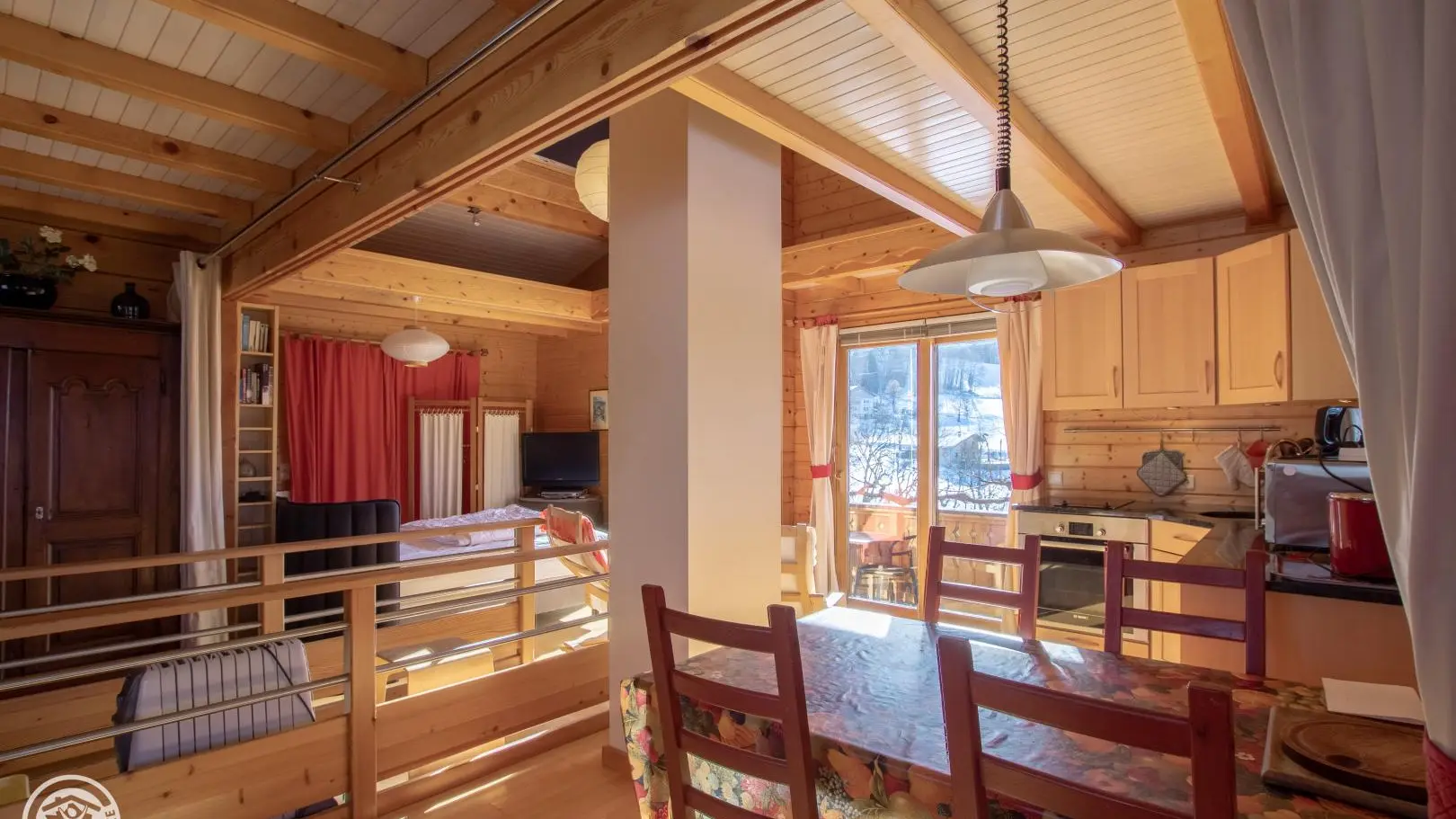 Ideal setting for discovering the mountain landscapes, in the heart of the Vallée Verte. Lots of originality in the layout of this independent chalet (39m² + 14m² veranda) located on a ceramist artist's studio (workshop + exhibition). Beautiful bright open room including a kitchen and dining area, a small lounge area (hifi, 1 bed 90cm) and sleeping area (1 bed 160cm), shower room/wc. Central heating. Very neat decoration. Sheets are provided. Enclosed balcony-terrace with table and chairs, garden with deckchairs and parking. 10% reduction for stays from 3 weeks. Access by motorable road over 150m. Skiing (Les Brasses, Habère-Poche) at 5km. Thonon (Lake, Thermal baths) at 27km. Geneva at 29km. Many hikes from the cottage. Non-smoking cottage.