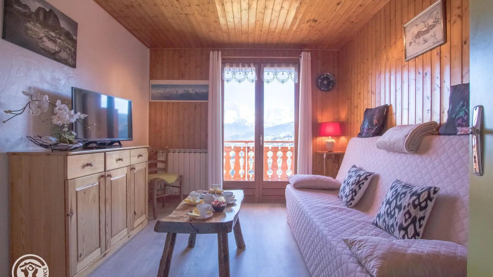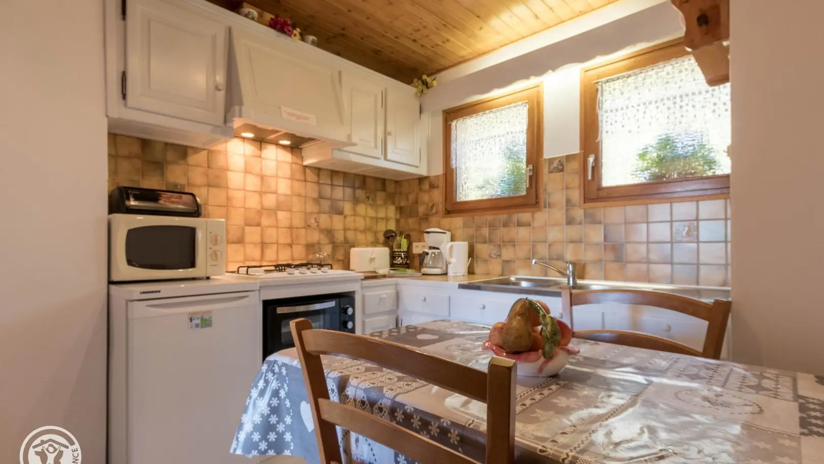 Overlooking the Arve valley and the Mont-Blanc and Fiz chains, 35m2 gîte on the raised ground floor of a house including another gîte and owners' accommodation. Kitchen, living room (140 cm sofa bed), bedroom (1 140 cm bed), balcony facing Mont-Blanc with furniture. Shower room (shower), wc. Central heating. Parking, common terrace, garden furniture, barbecue, courtyard. Washing machine. Internet wifi. Ski areas of Cordon 2 km, Megève 8 km (La Princesse, le Jaillet, Rochebrune). Shuttle 1 km. Many hikes from the house. Panoramic view. Gîte can be combined with gîte n° 89010. In winter, shuttle at the foot of the gîte.