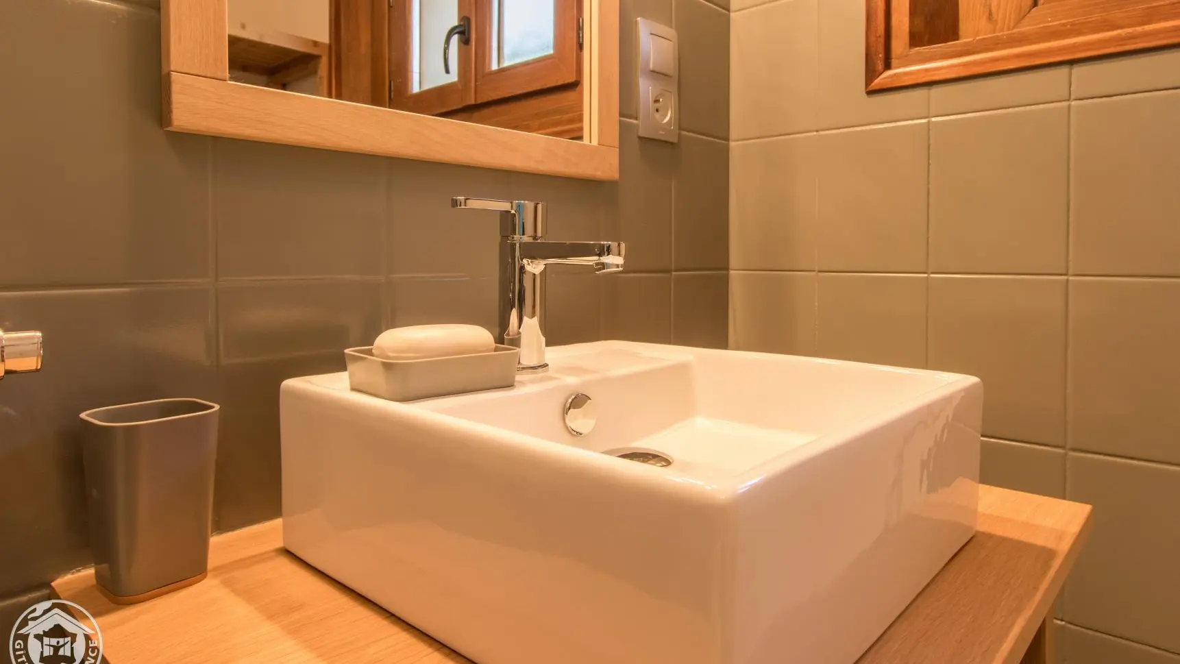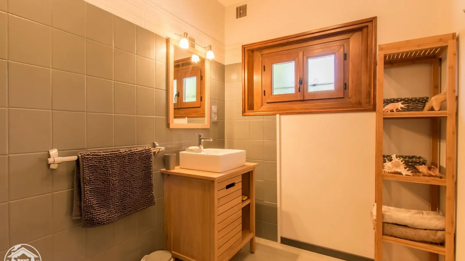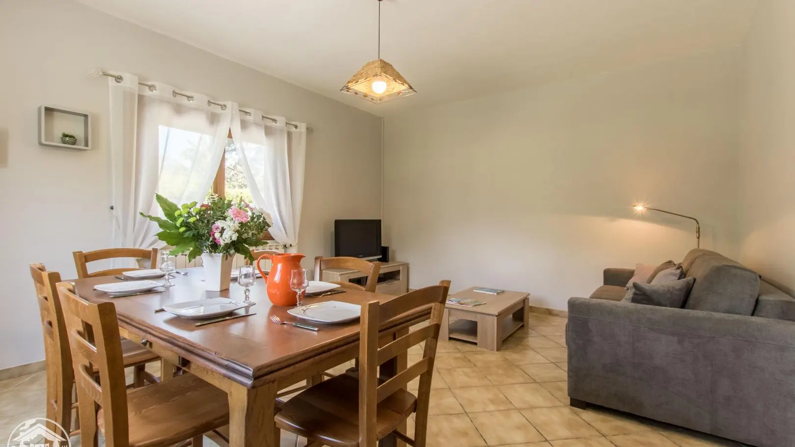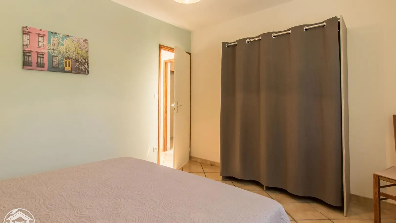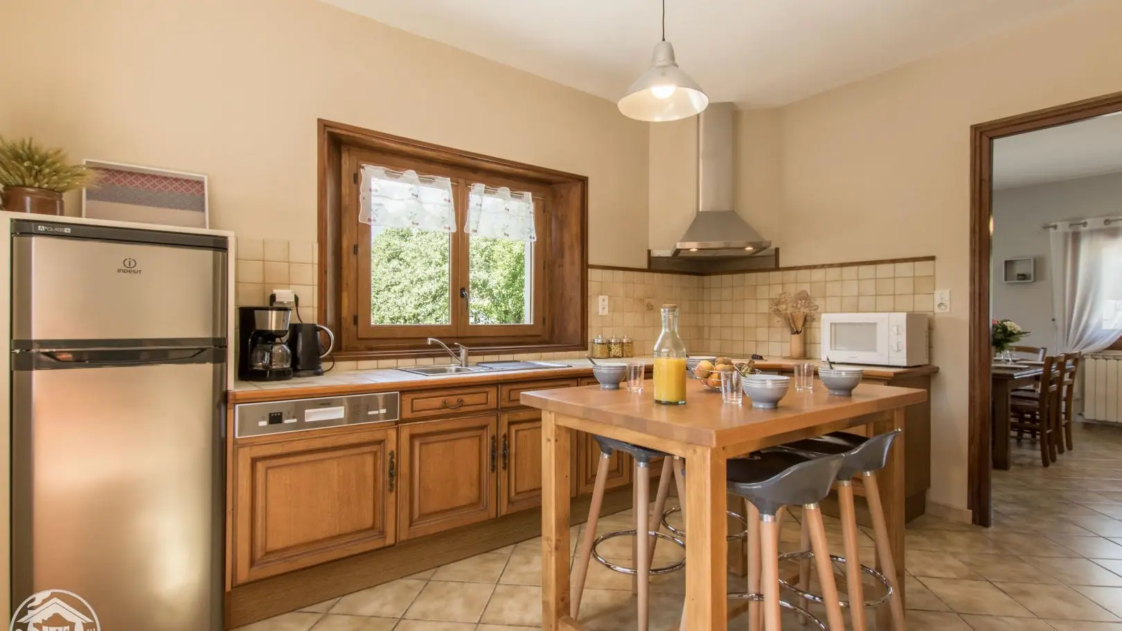 On the ground floor: fitted kitchen with bar table, living room - dining room (sofa bed type rapido, television, dining table), bedroom 1 with 1 bed 140x190cm, bathroom (shower), separate wc.
