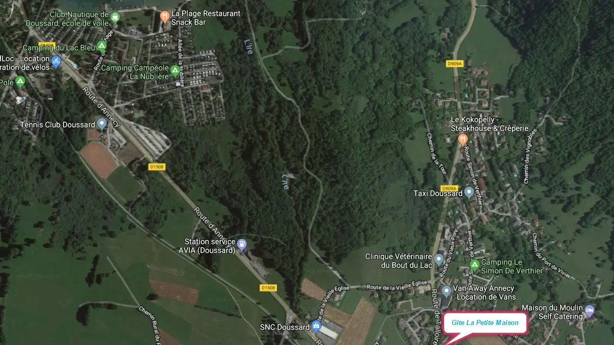 House set back from the main road linking Annecy to Doussard by the banks of the lake (D909A - 15m from the house). Easy access to the bike path (linking Annecy to Albertville) 150m from the house.