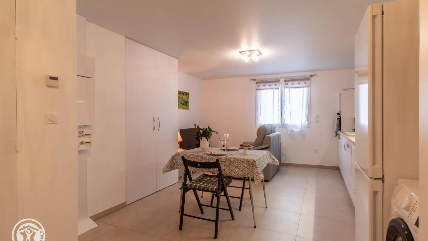 On a farm, gîte for 2 people with a separate bedroom. Ideal location for a getaway for two in a country/farm setting while being close to towns (Aix-les-Bains, Annecy, Rumilly, Seyssel, etc.) and tourist sites: Gorges du Fier, Les Jardins Secrets, etc.