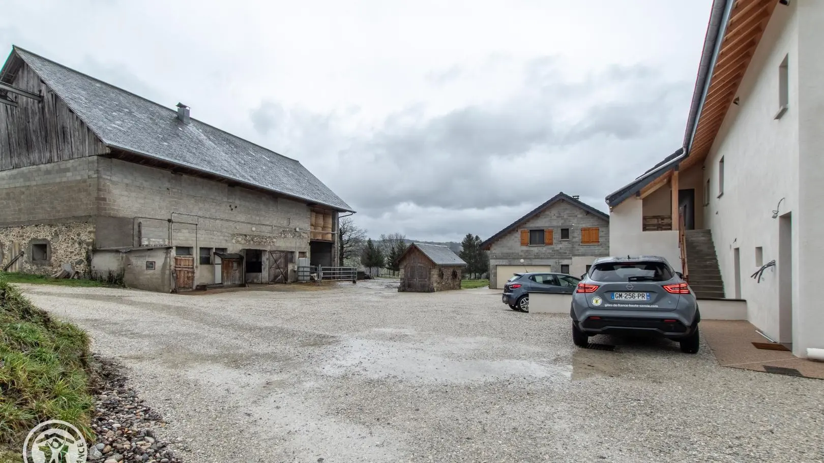 Parking in front of the building. Presence of a grocery store / tapas bar on the ground floor of the building on the street side, run by the owners (opening May 2024). Farm with animals (cows, pigs, etc.).