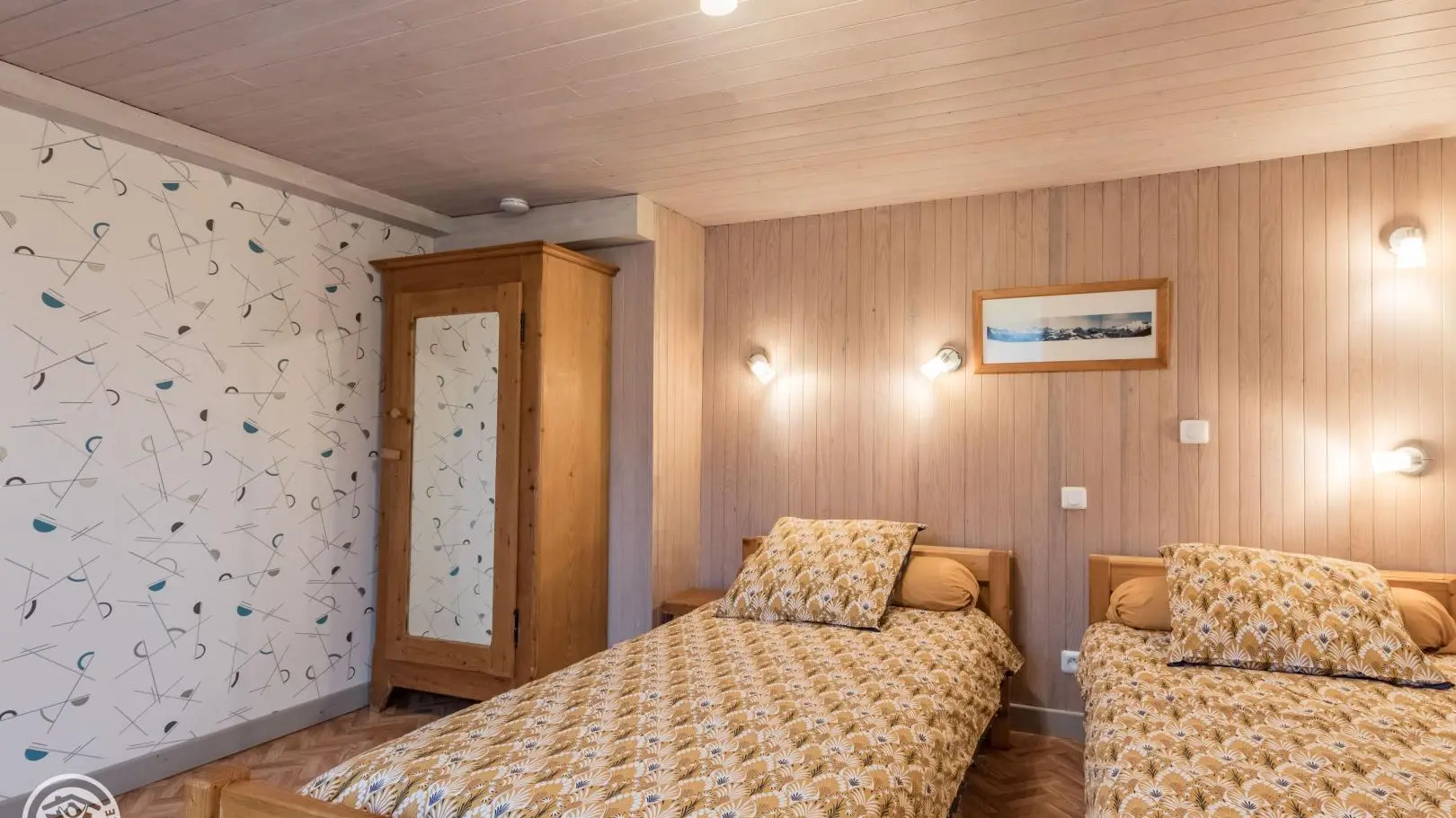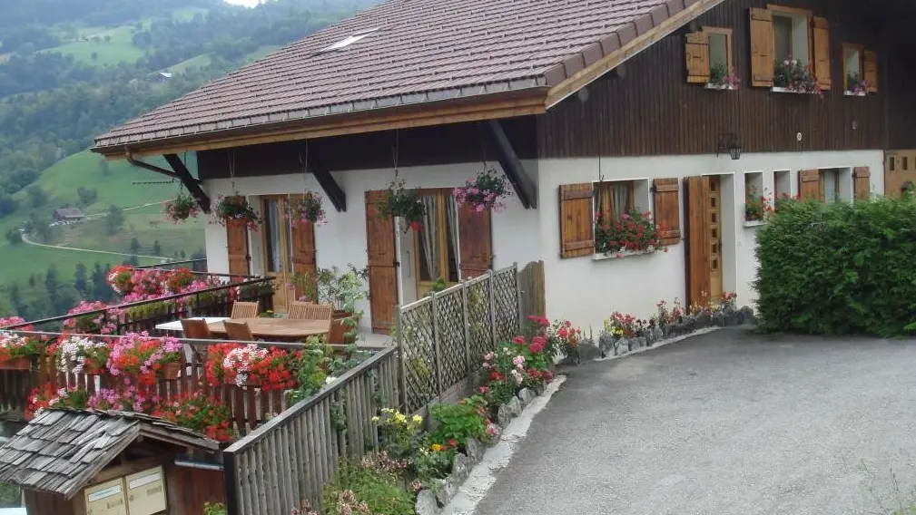 Opposite mountains (Le Sulens, La Tournette), house comprising 2 gîtes et owners' home. Gîte 2 (36m2) at garden level: kitchen opening onto living room (double sofabed), 1 bedroom (2 single beds), bathroom/WC. Electric heating. Shared garden (garden furniture, barbecue). 10% reduction for stays of 3 weeks. For hire: bed linen. Equipment storage. Gîte situated on road leading to village. La Croix-Fry/Merdassier ski area linked to La Clusaz 7km. Cross-country skiing, snow-shoeing, ski trekking, footpaths. Day nursery, shops 200m. Free shuttle 100m. Thônes 6km (swimming pool, tennis, cinema, museum).