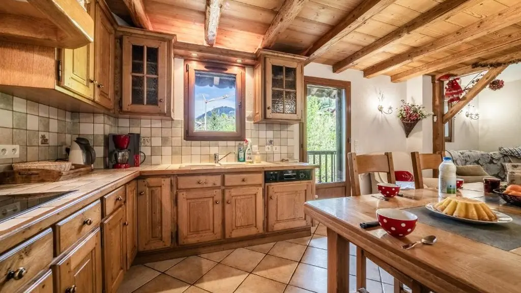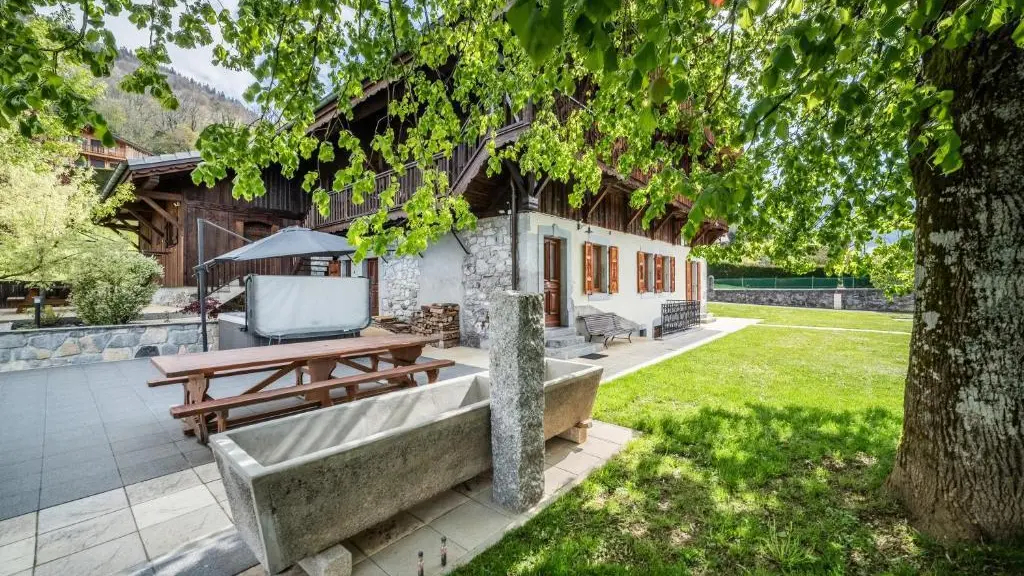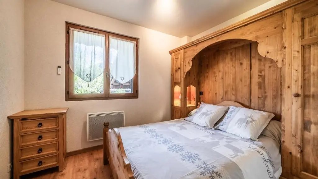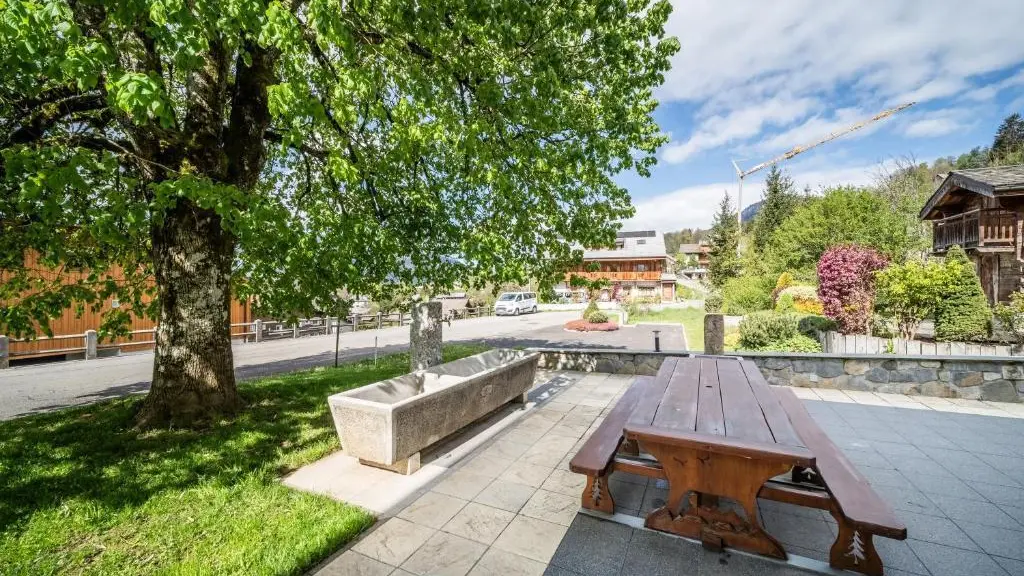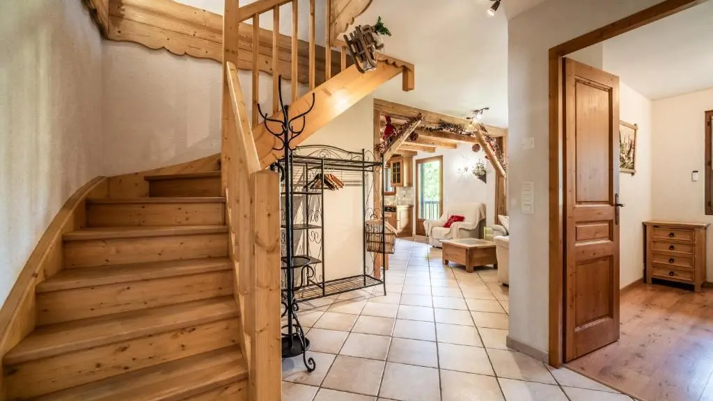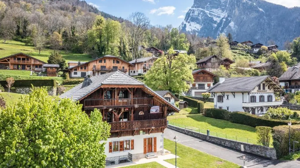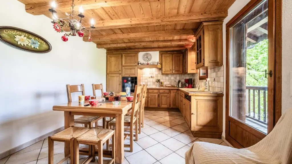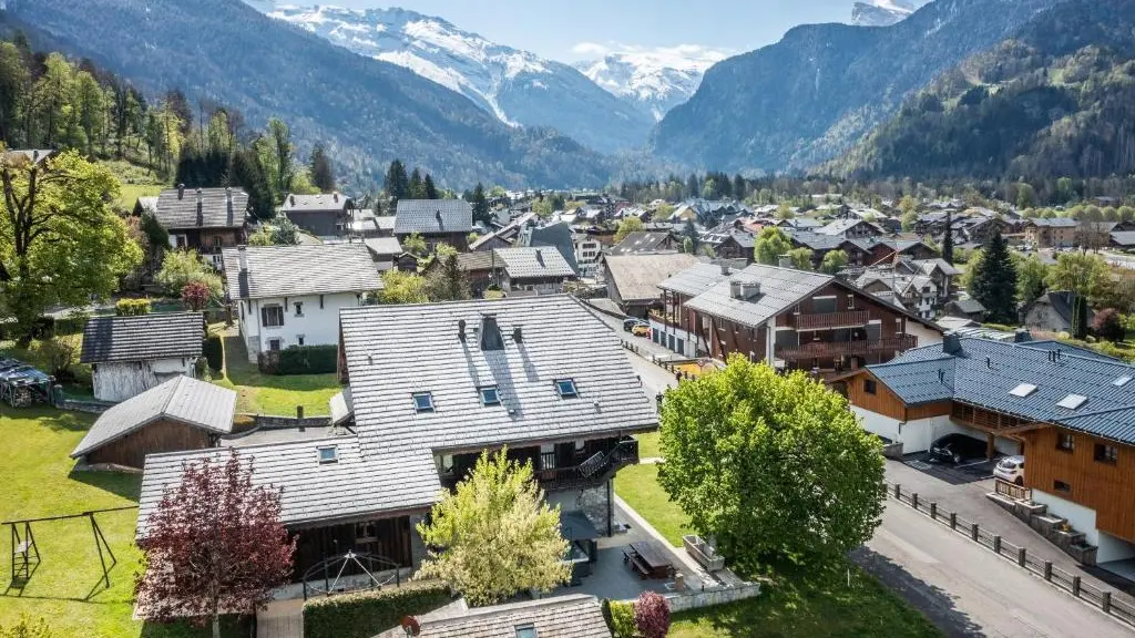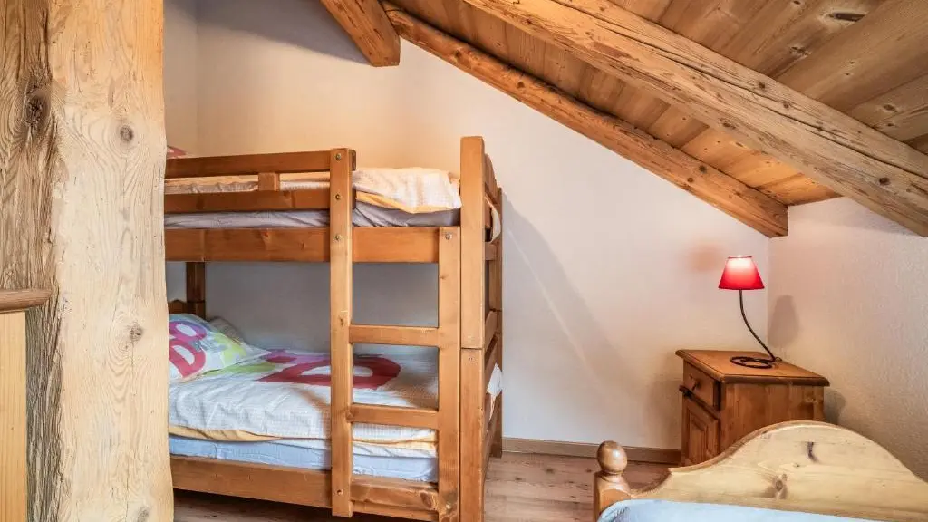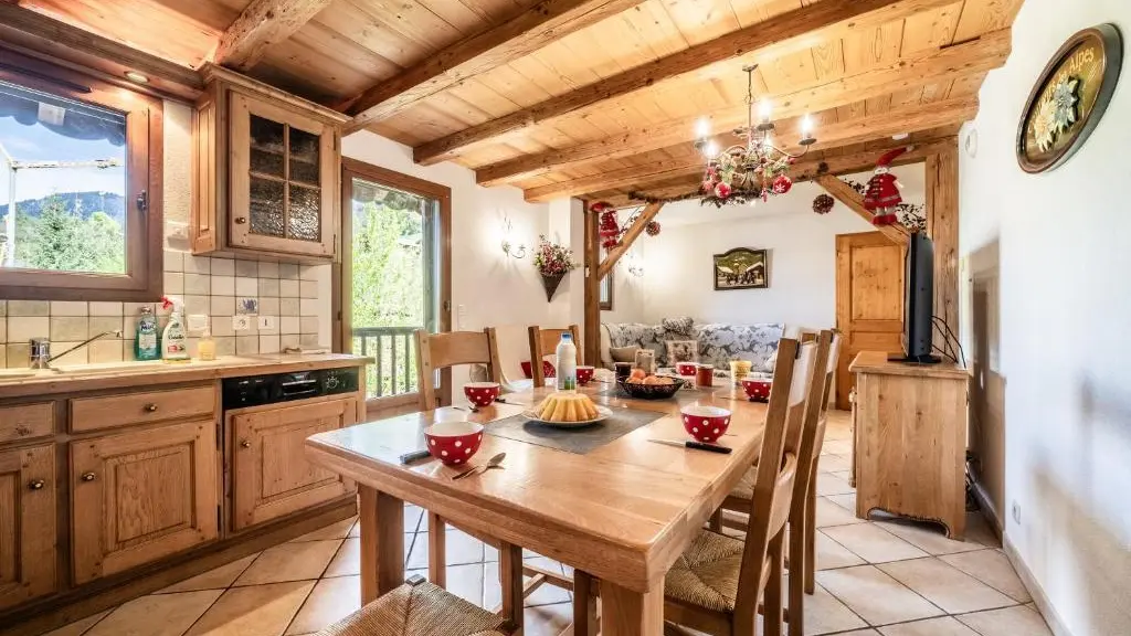 250m from village centre et 1km from Le Grand Massif Express (cable-car), superb 2-level gîte (67m2) on 1st floor of old traditional farmhouse also containing 3 other gîtes. Entrance hall, fitted kitchen (microwave) opening onto living room (flat screen satellite TV, DVD player), access to balcony, bedroom 1 (double bed), shower room/WC. Upper level: bedroom 2 (double bed), bedroom 3 (beds: 1 single, 2 bunk), bathroom (washing m/c, tumble-drier). Beds made on arrival, bed linen supplied, housework included in rent. Central heating. Private garage, storage for skis shoes. Garden (shared barbecue). Extra charge for pets. Leisure centre 1km.